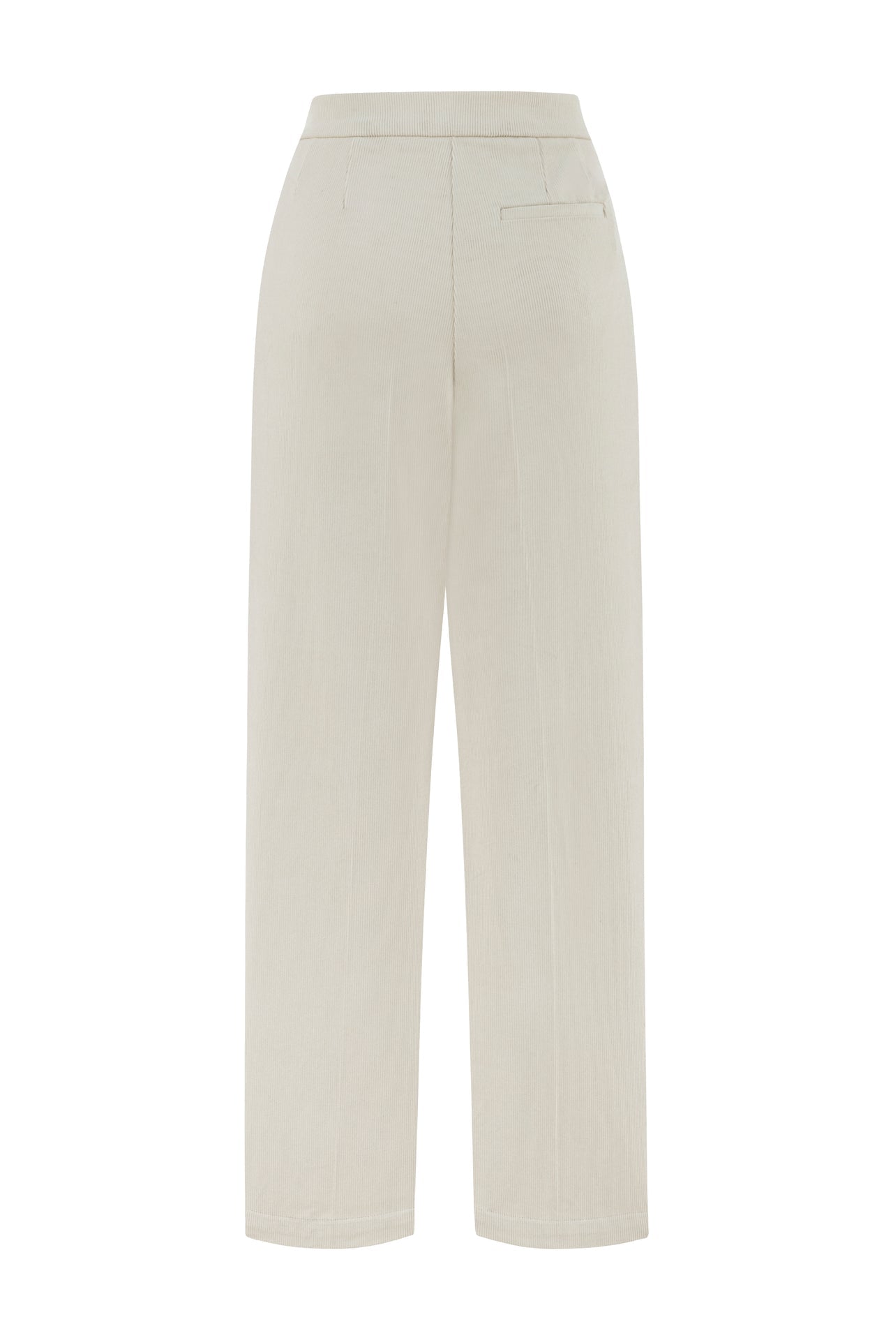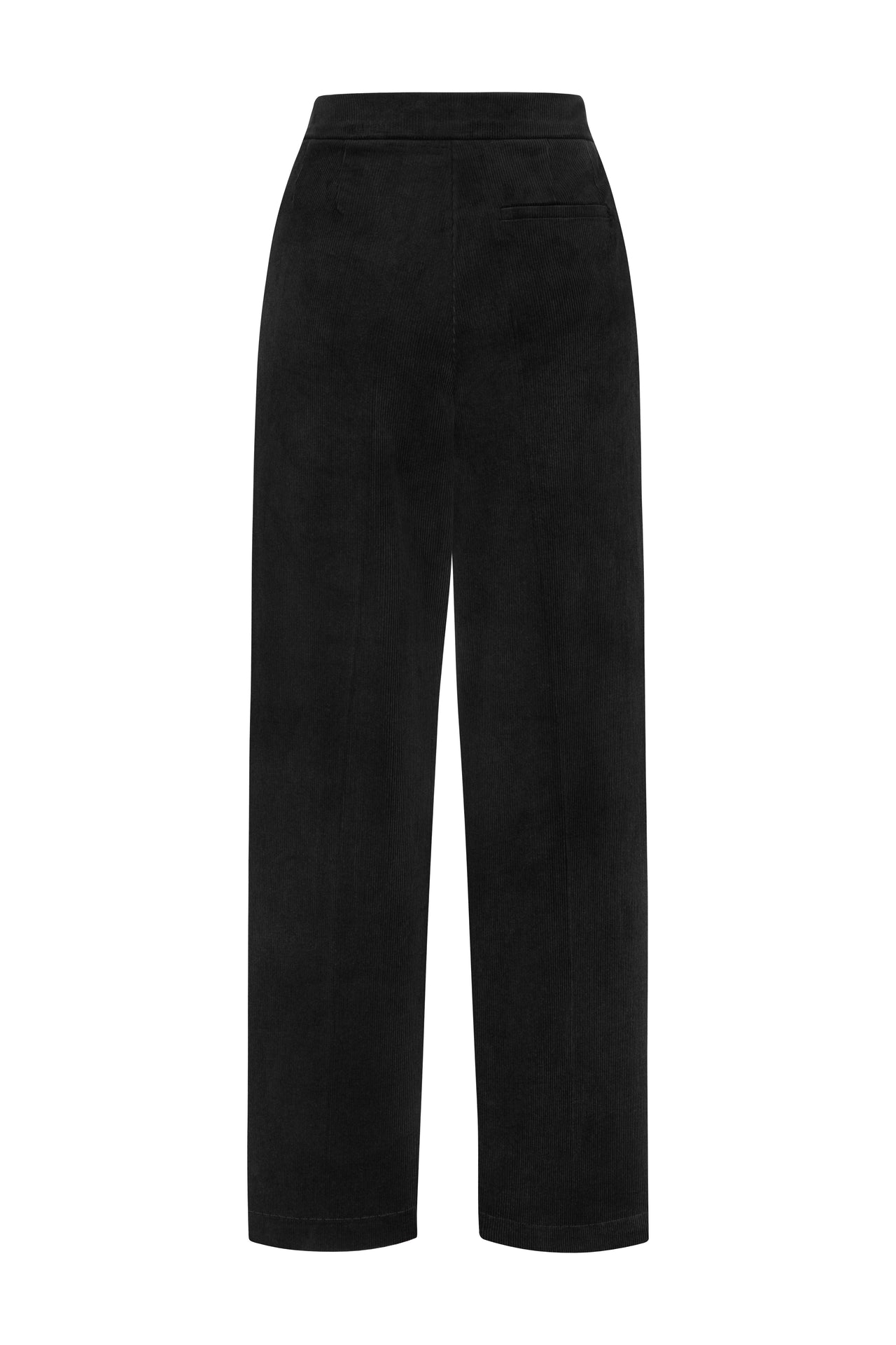 High-waisted straight leg trousers made of velvet fabric.