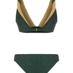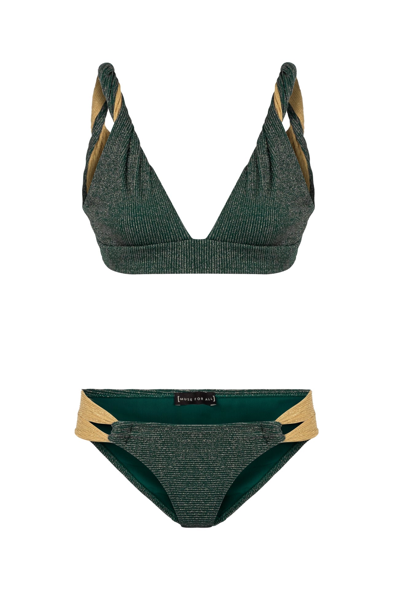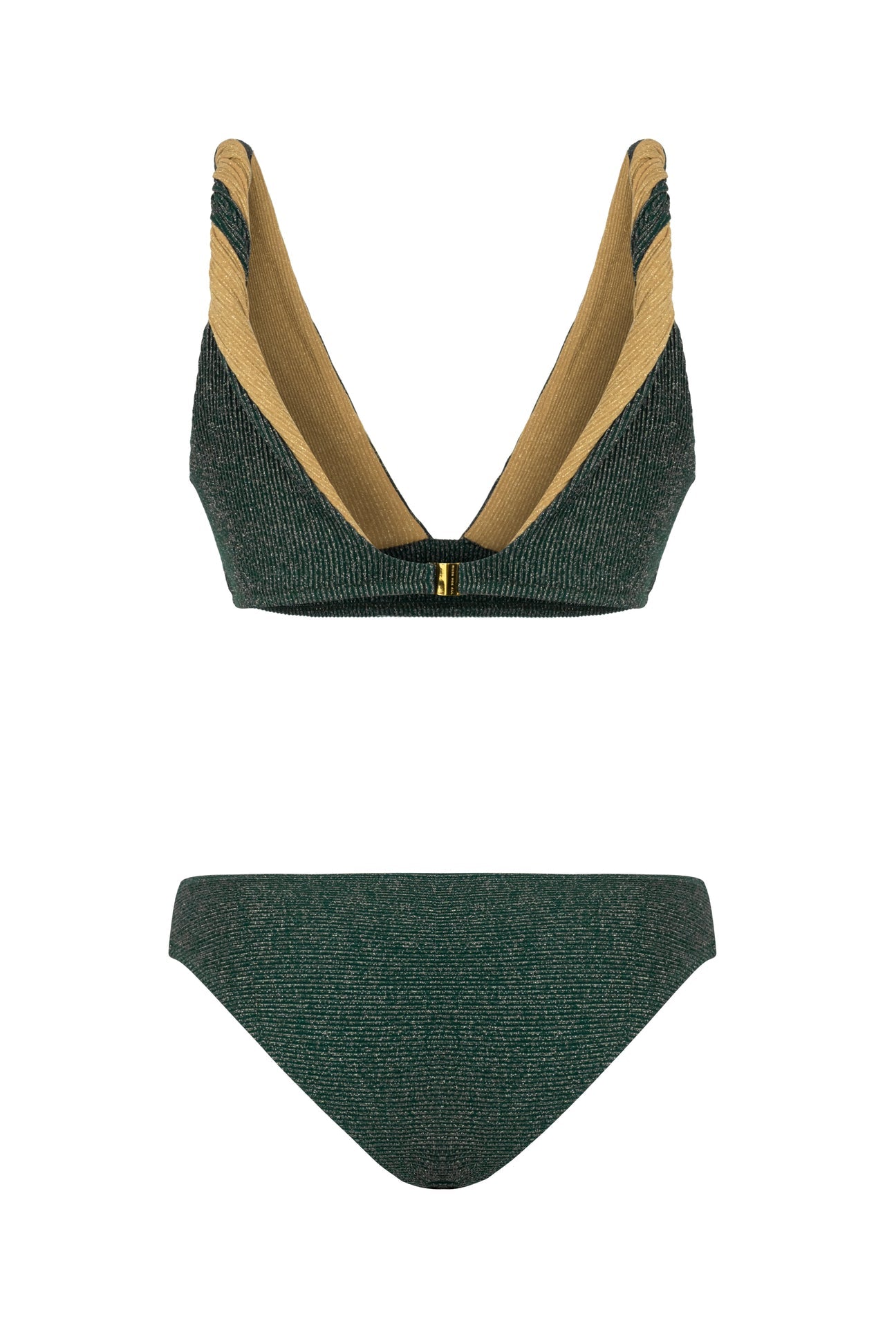 The top of the bikini set, which has a body-hugging design, is in the form of a triangle without underwire.