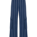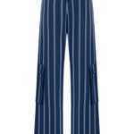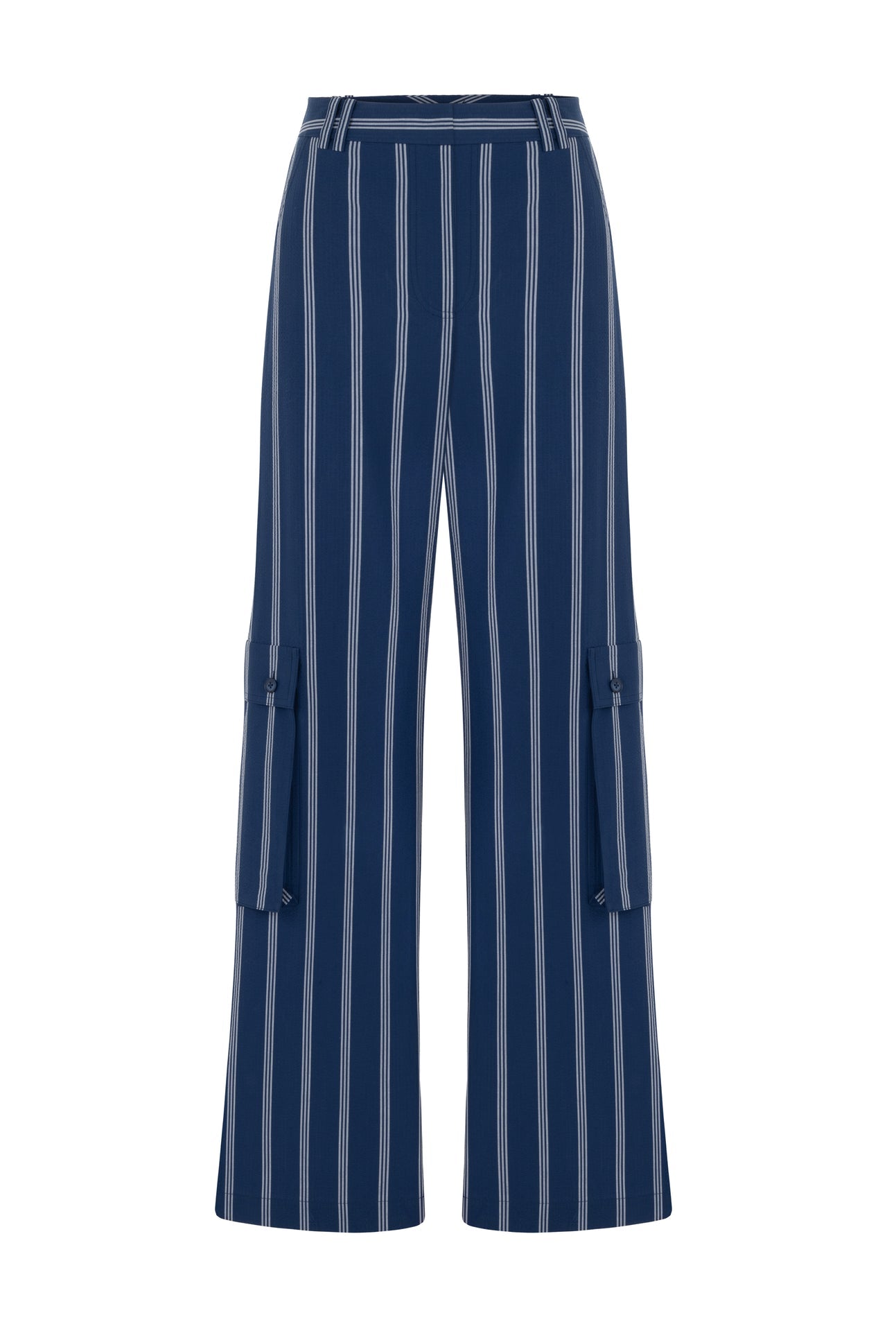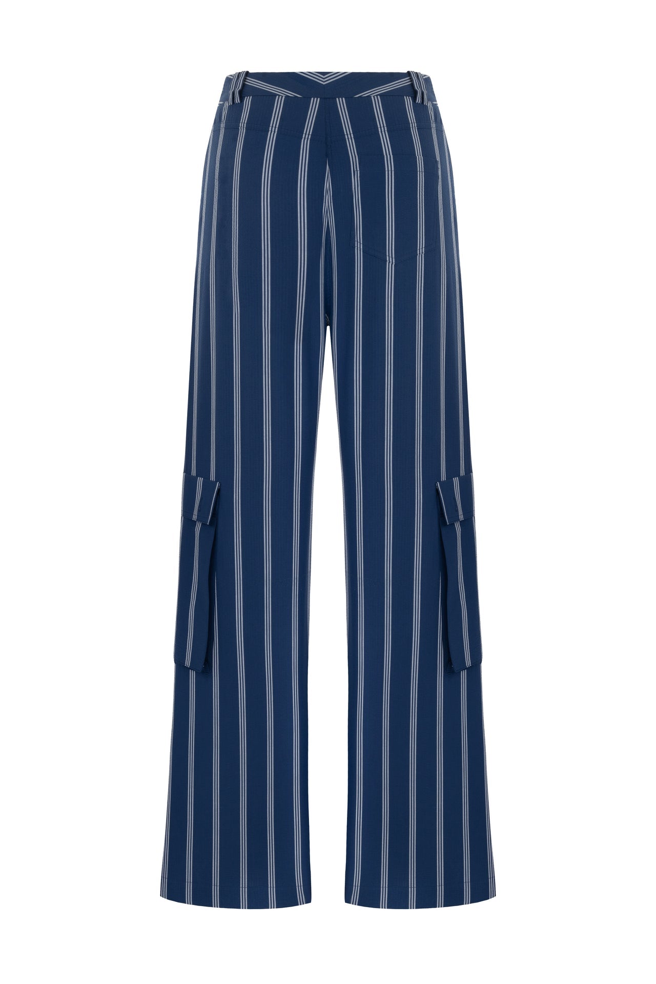 High-waisted straight-fit pants with striped pattern and cargo pockets.