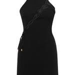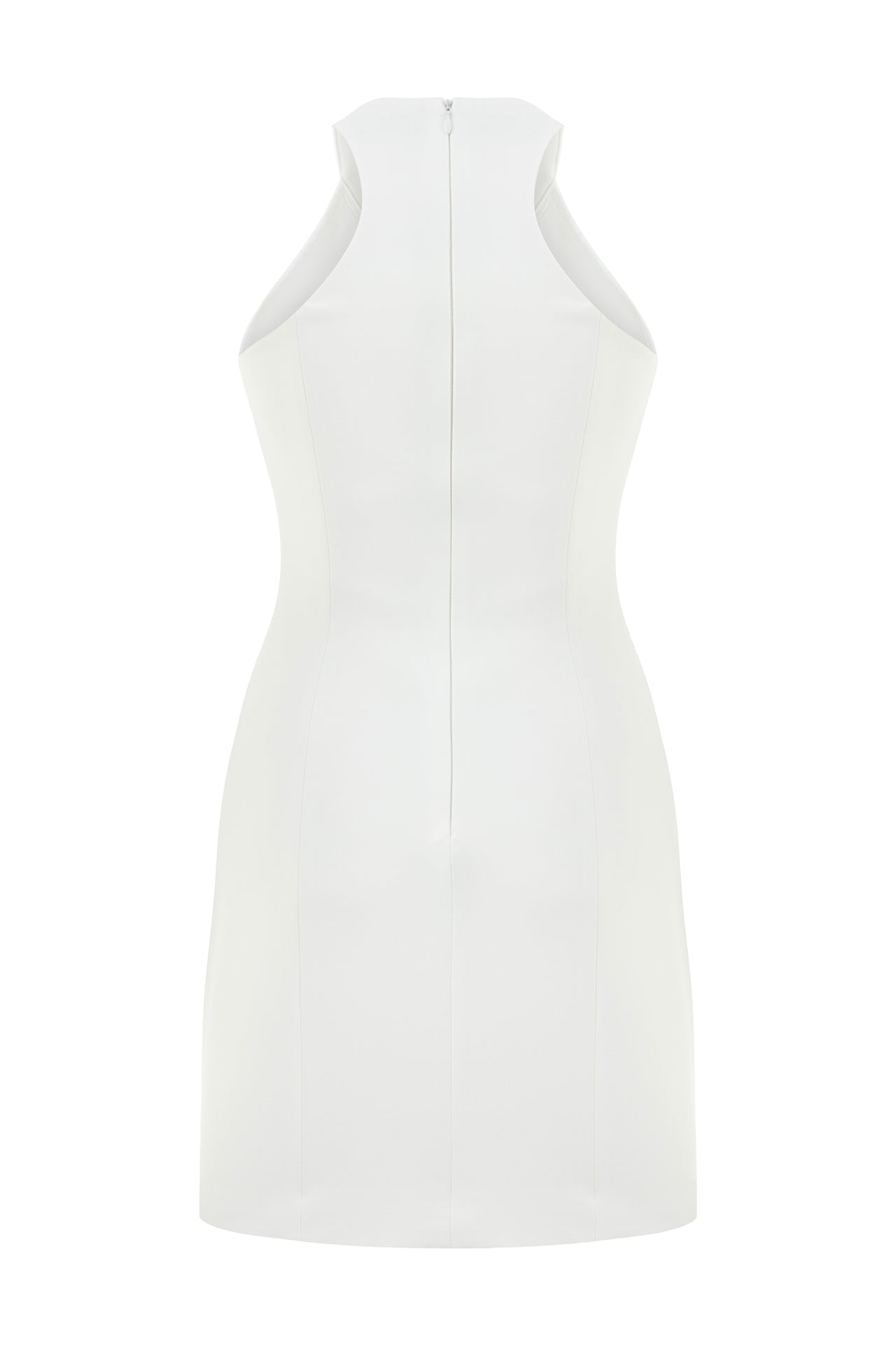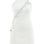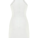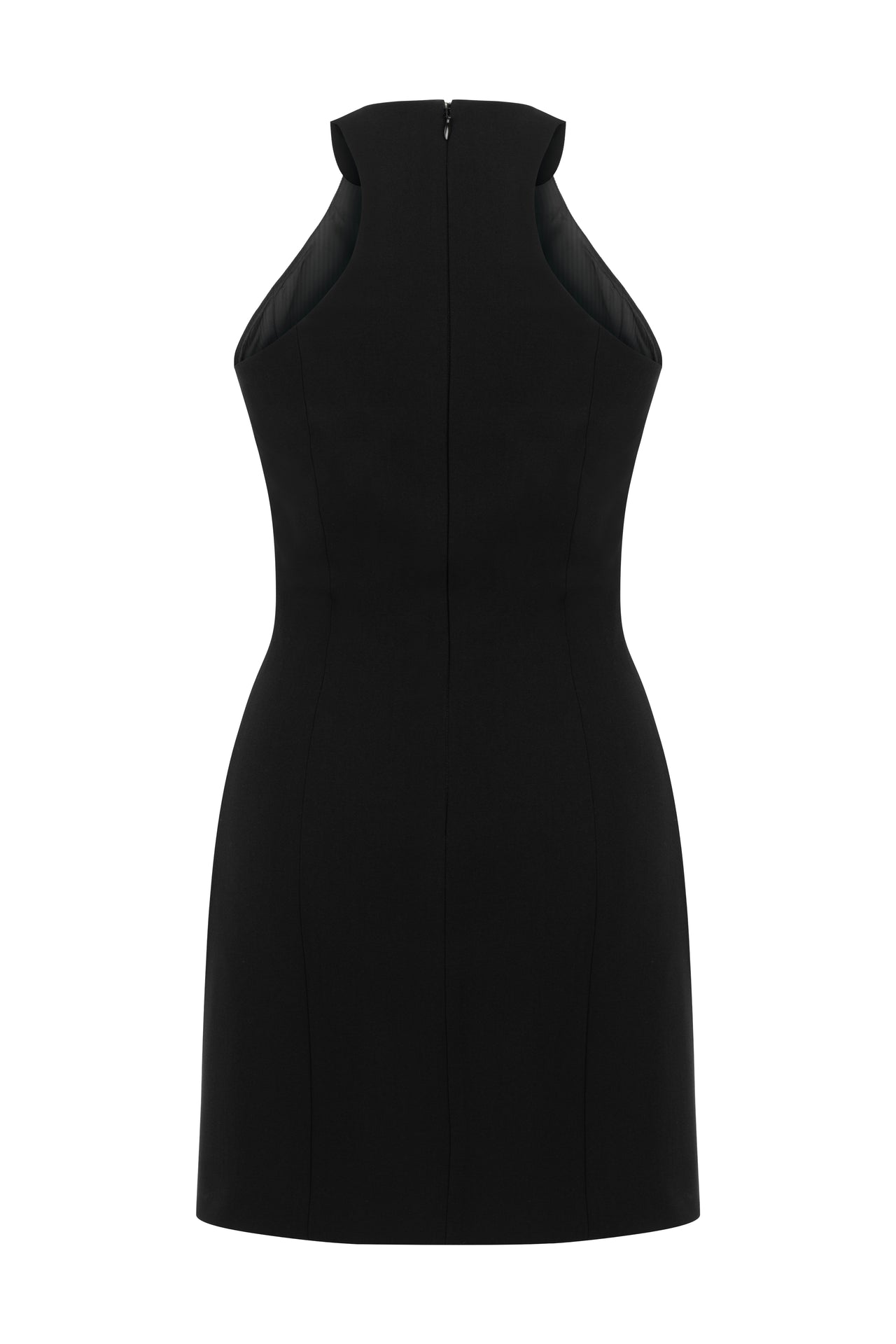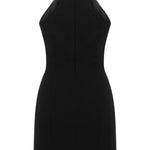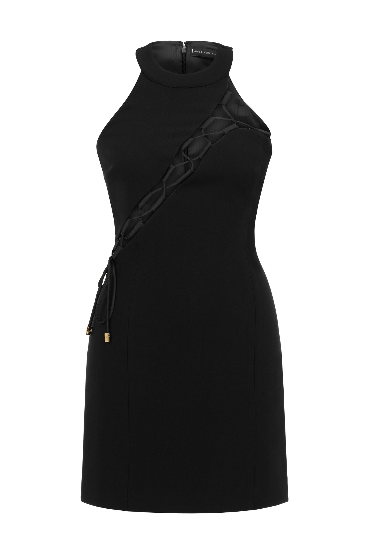 Sleeveless halter-neck mini dress with tie detail and bust cut-out.
