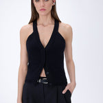 Halter-neck, button-up knit top