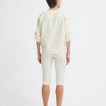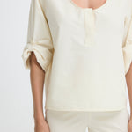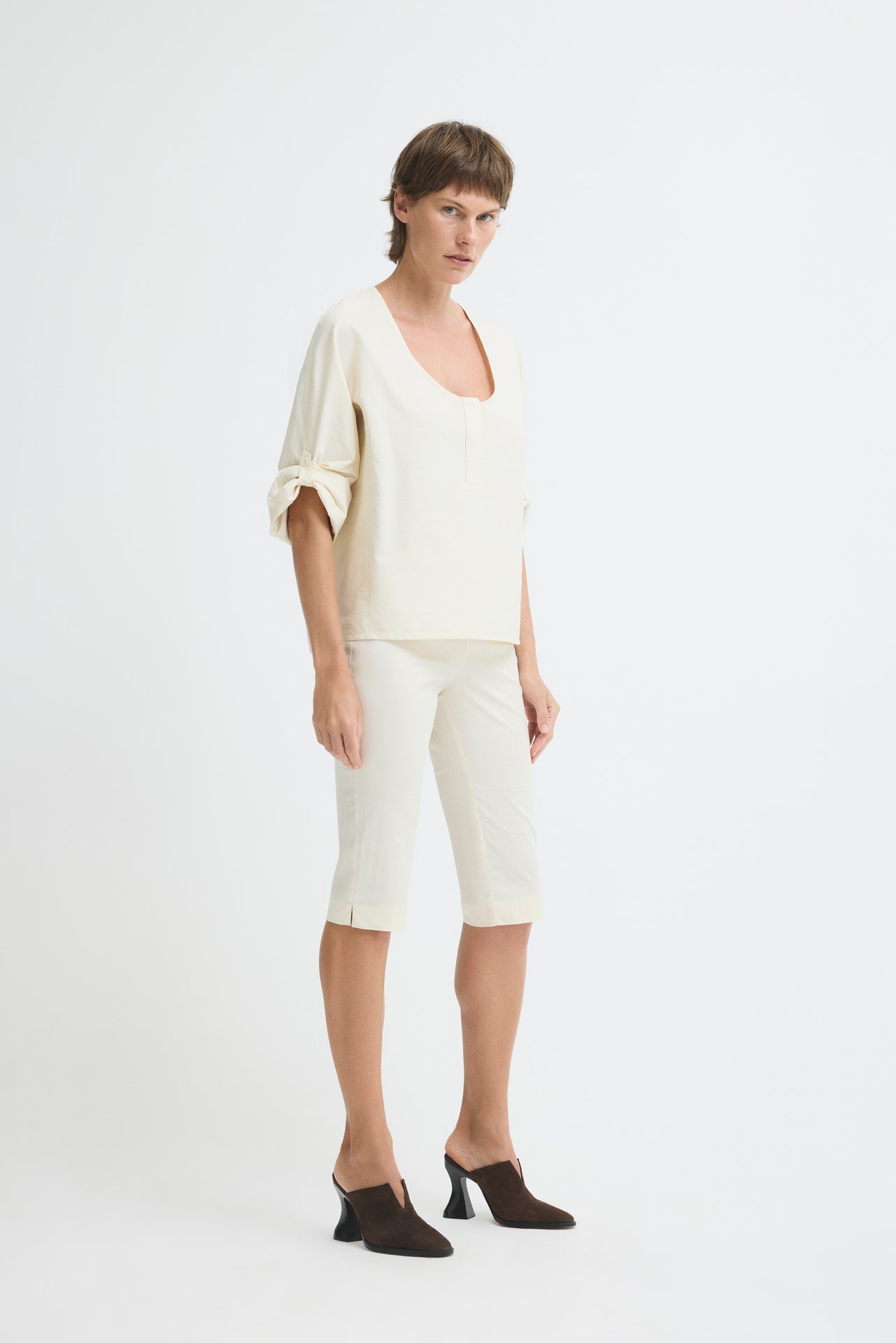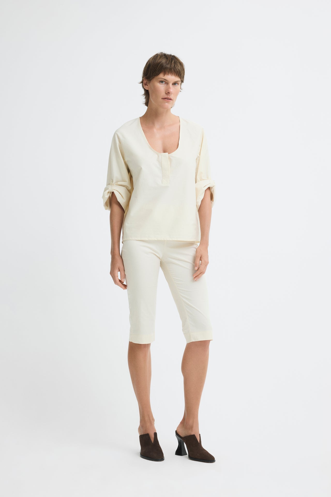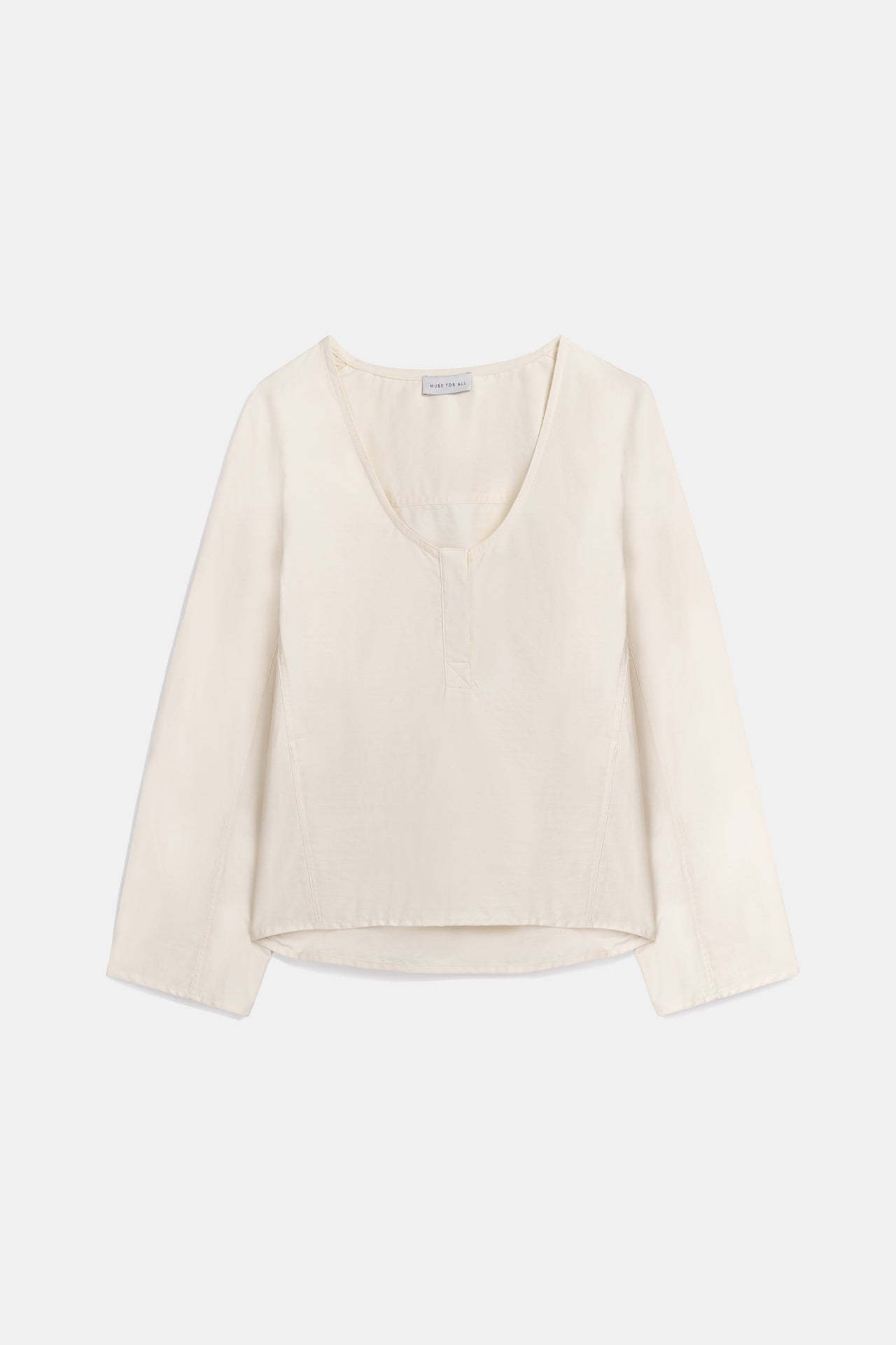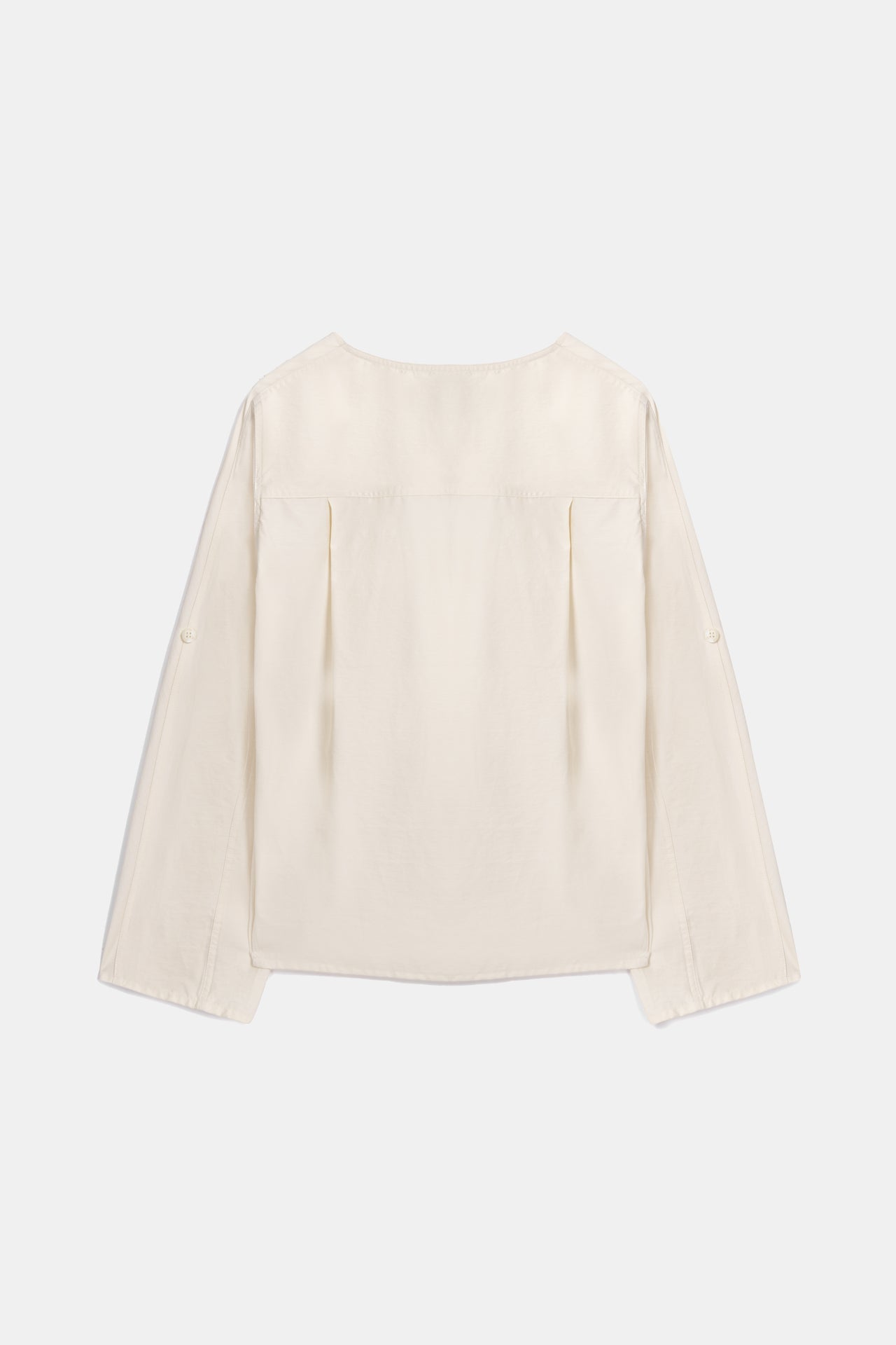 Relaxed-fit cotton shirt with wide neckline and stitched panel details.