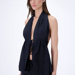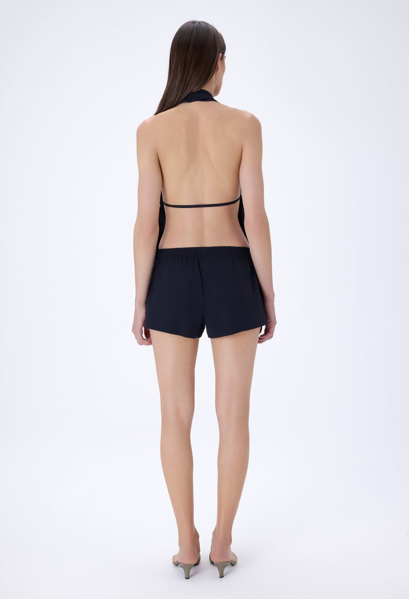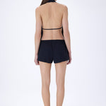 Drawstring-adjustable elastic waist mini shorts
