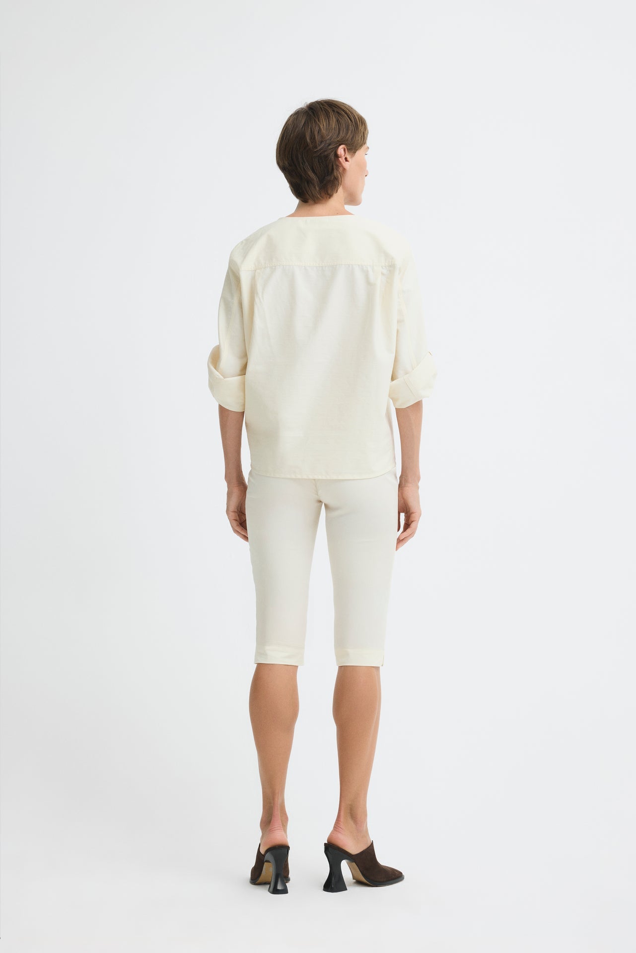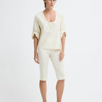 High-waisted, slim-fit shorts with slit detail.