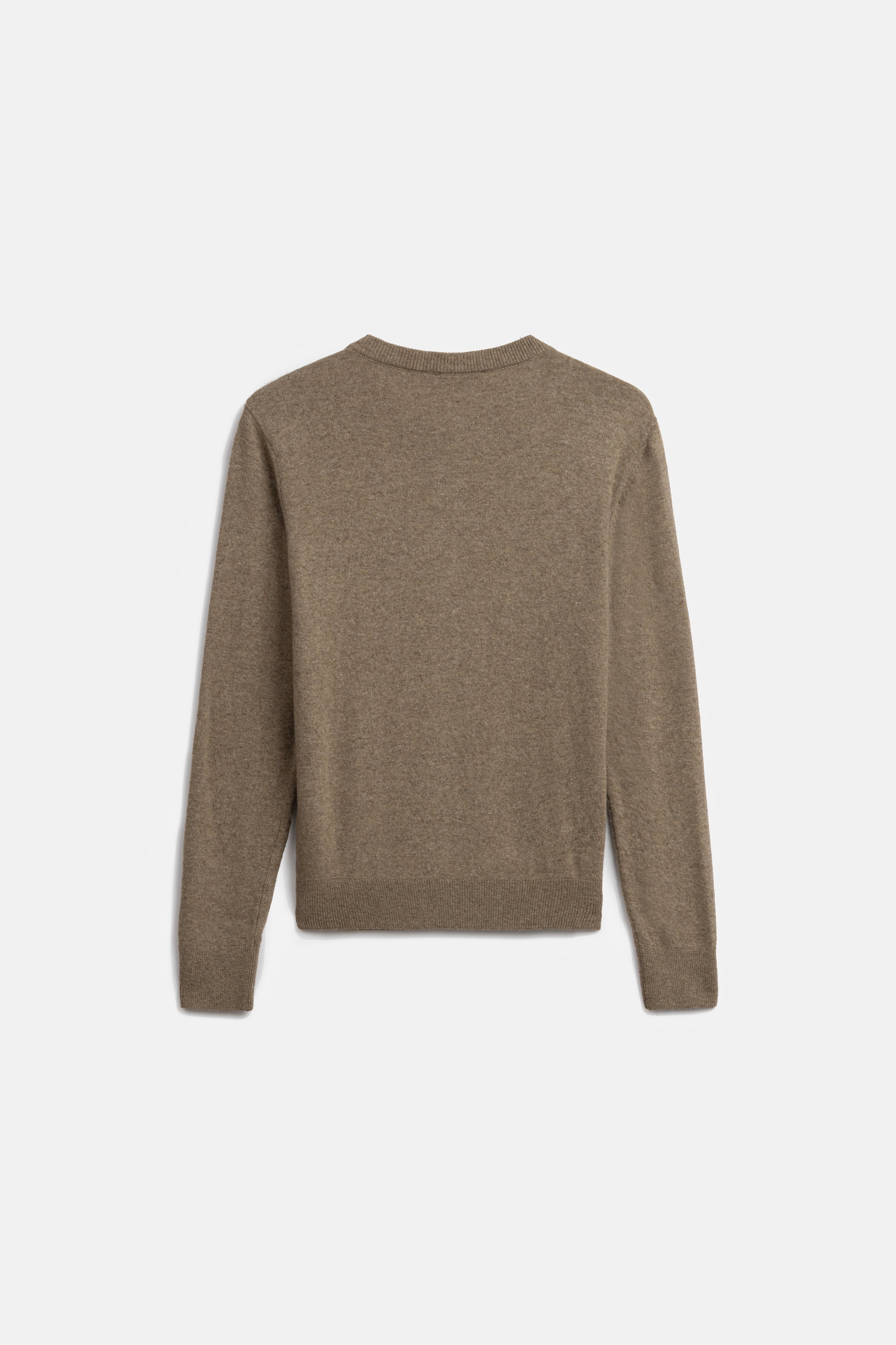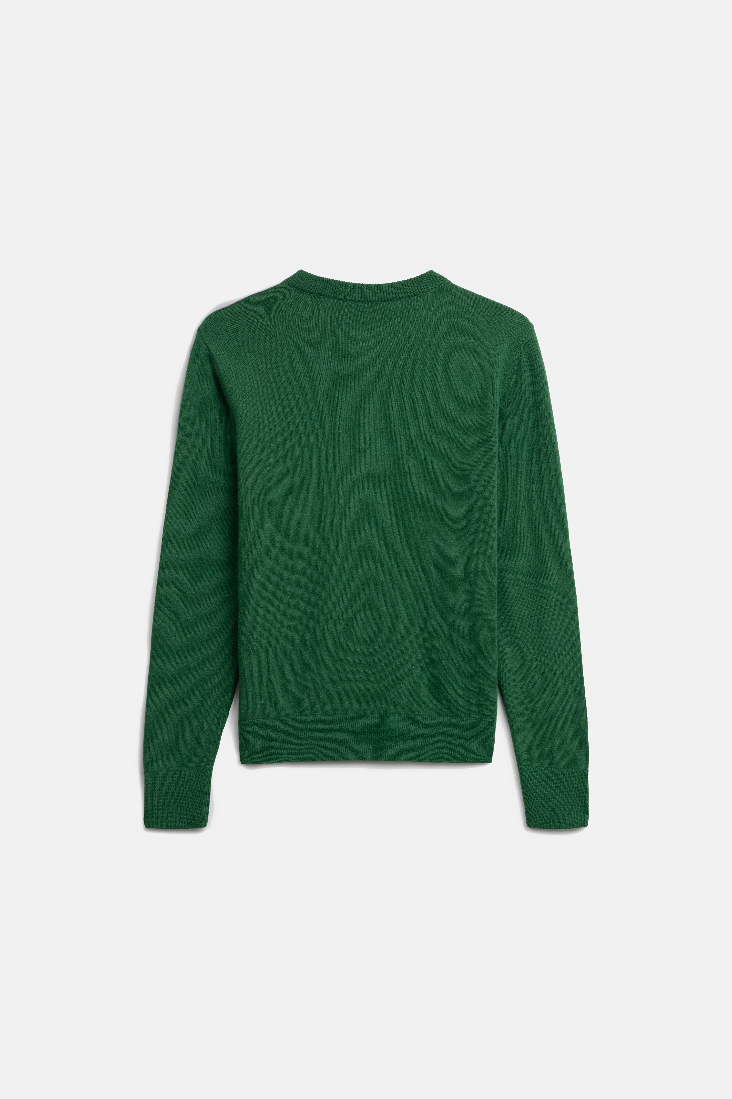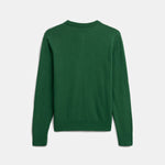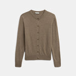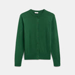 Crew neck, long-sleeved basic knit cardigan with full front buttons.