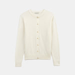 Crew neck, long-sleeved basic knit cardigan with full front buttons.