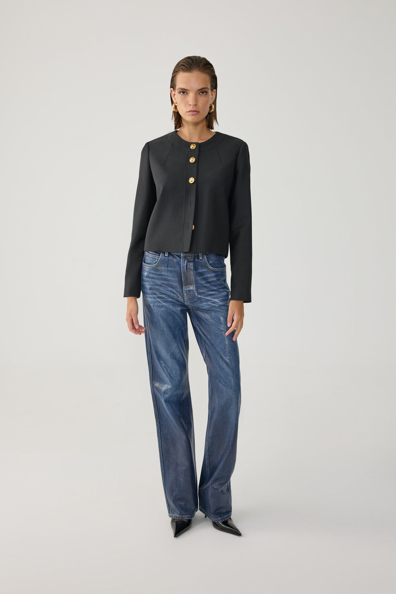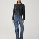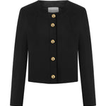 Crew-neck jacket made of a wool blend with gold buttons.