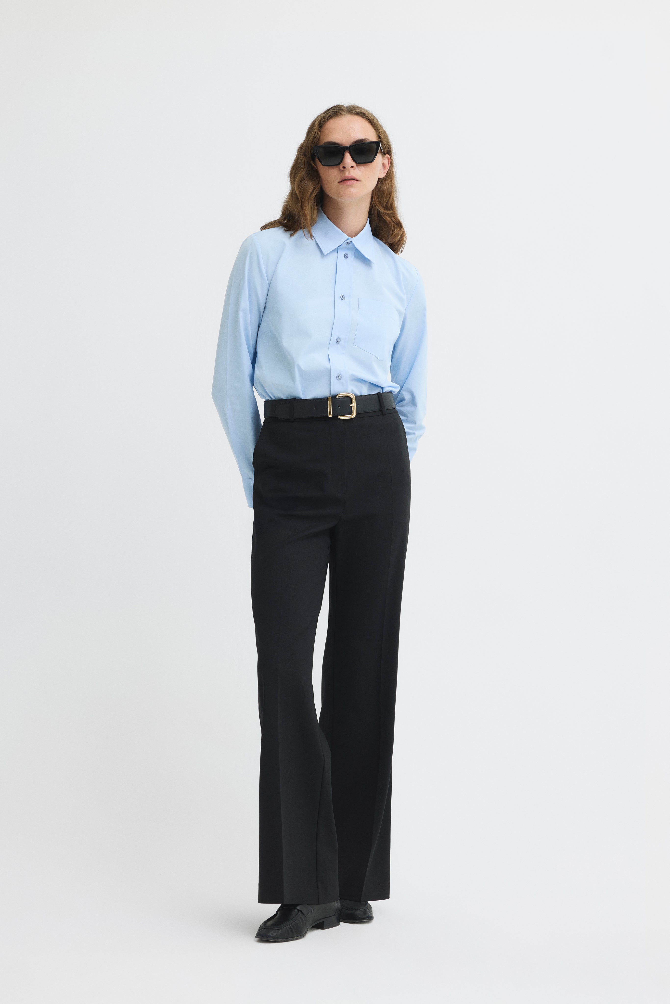 High-waisted tailored pants with pleats and wide legs.