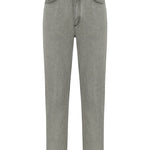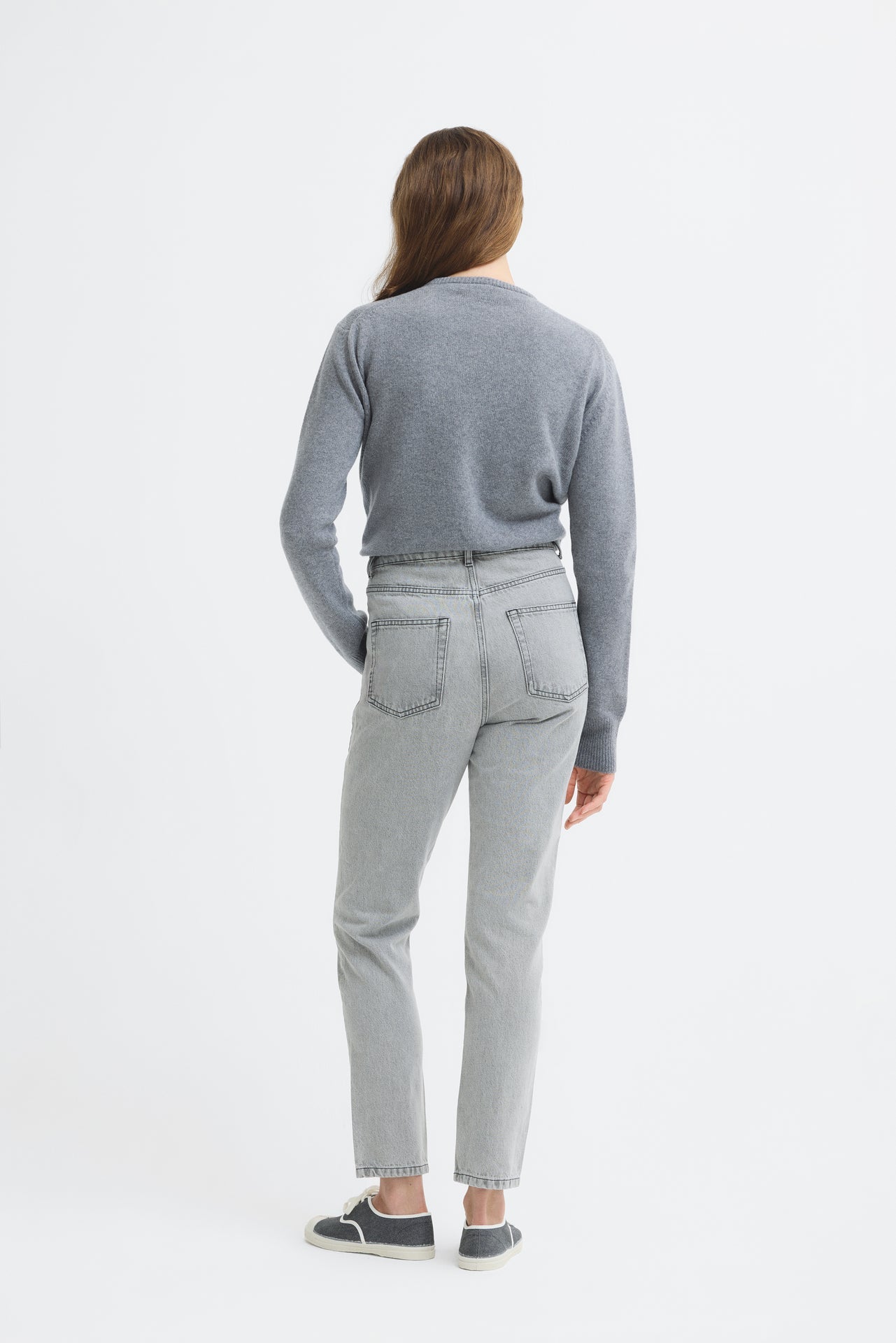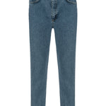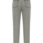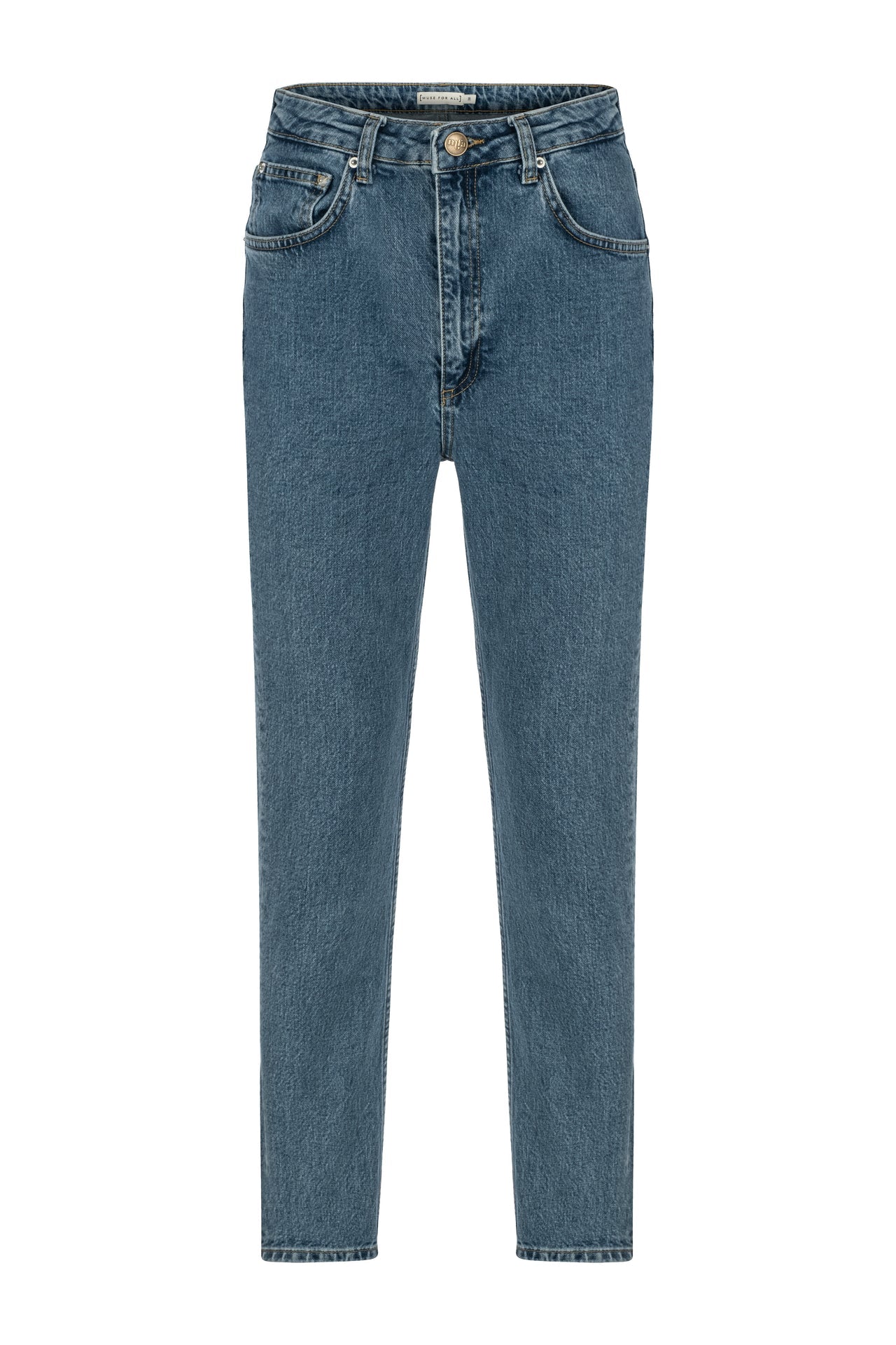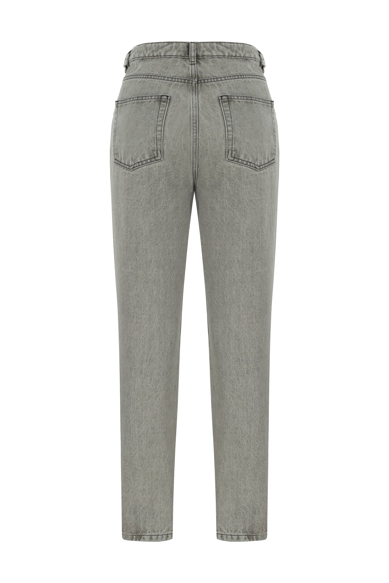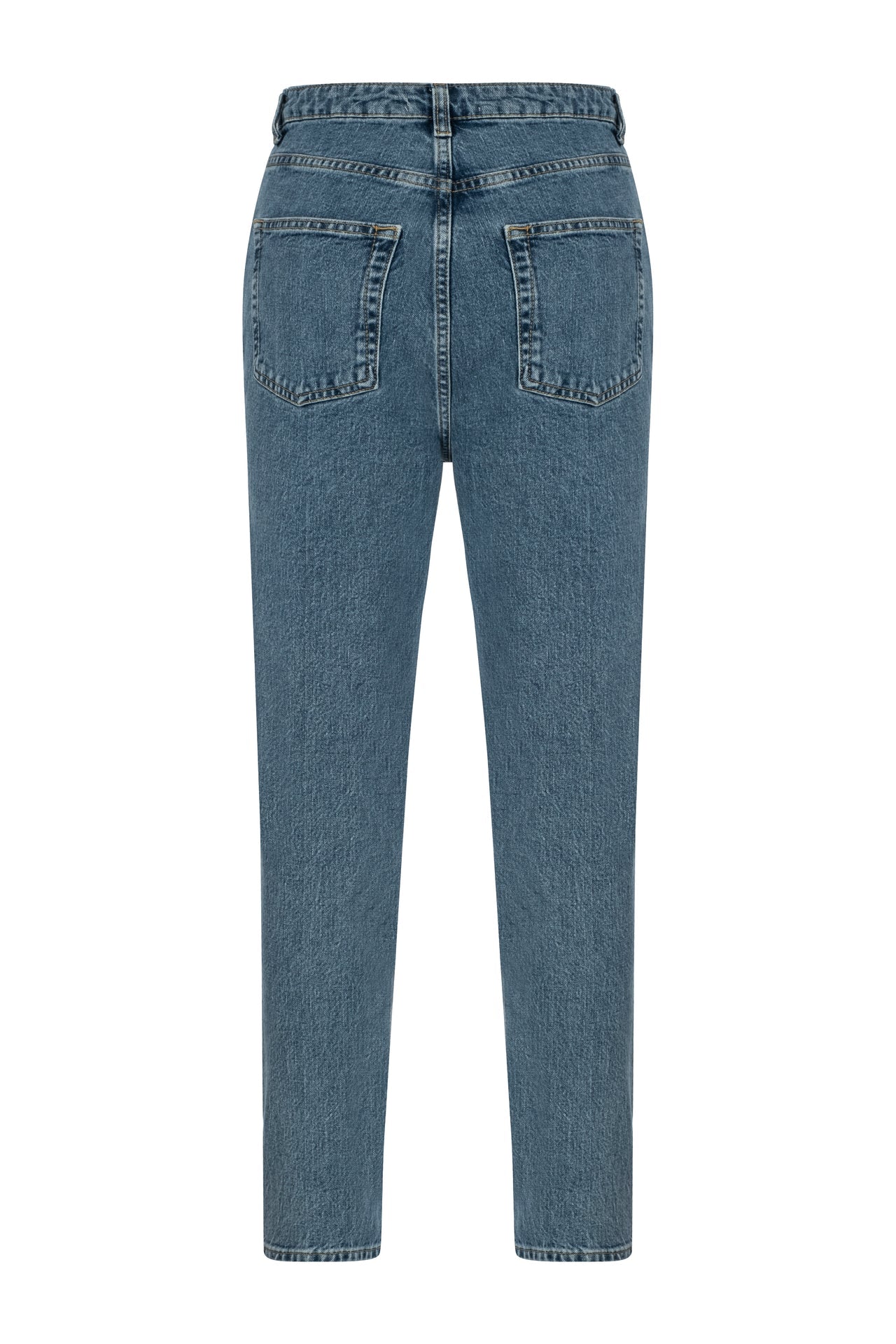 Mid-waist tube-leg pants. It has pockets and 5 bridge details on the waistband.