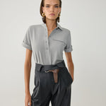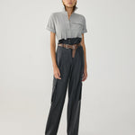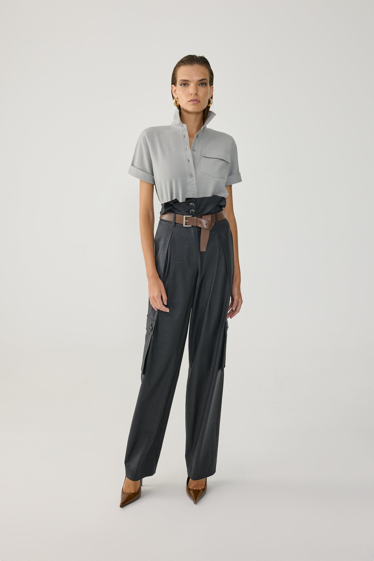 High-waisted and wide-leg fabric trousers.