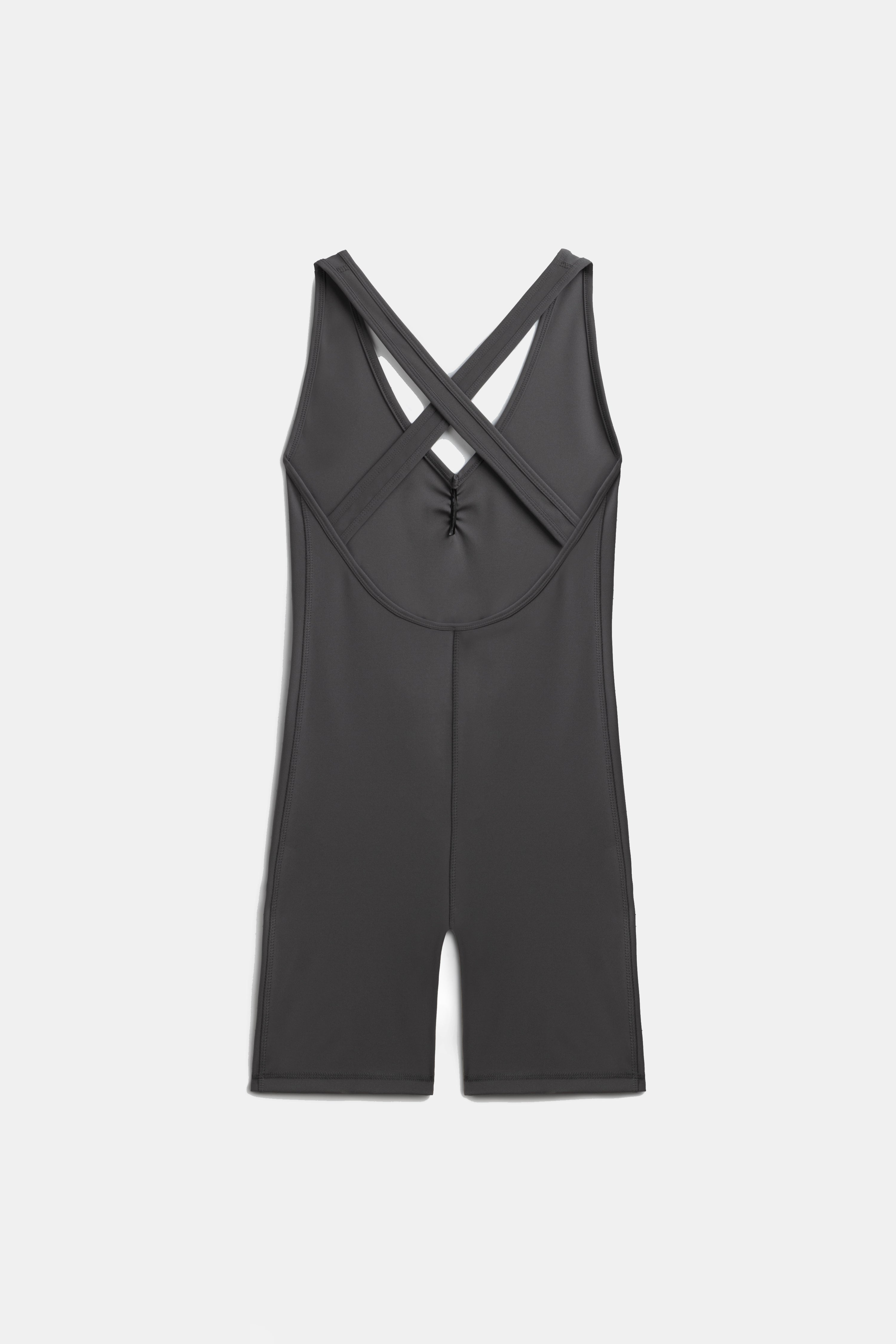 Strappy short jumpsuit with cross-back detail.