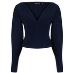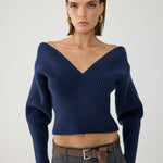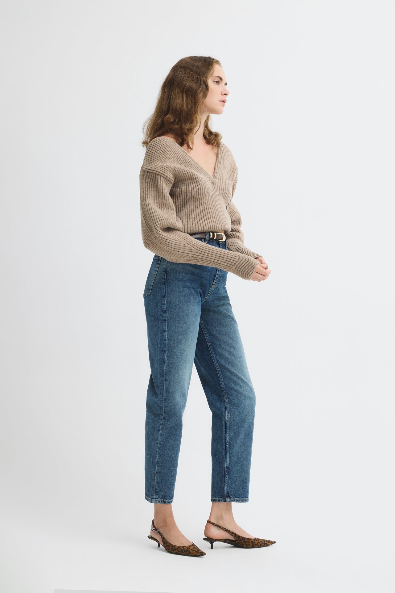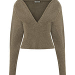 V-neck sweater with dropped shoulders.