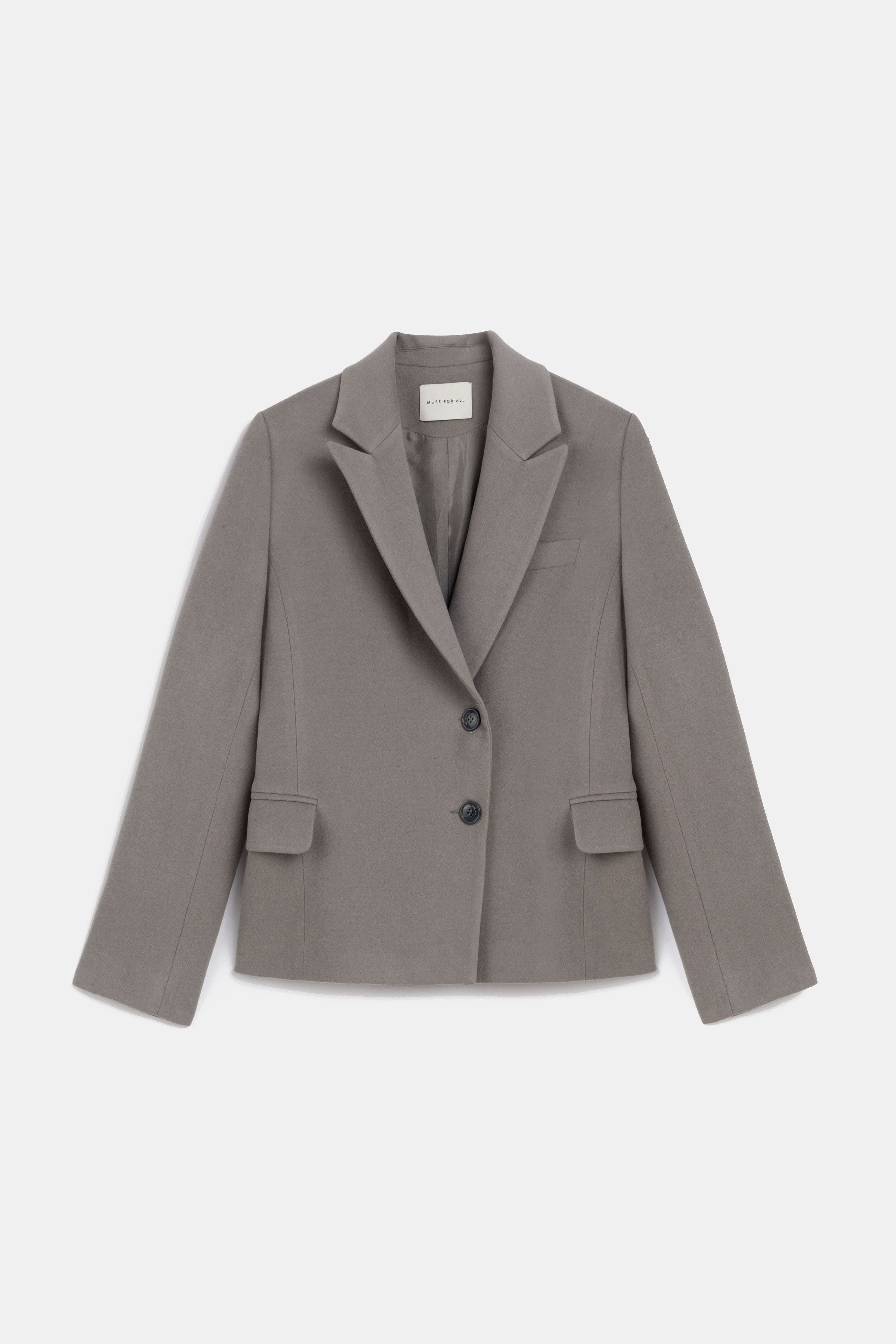 Short, classic-cut wool blend blazer.