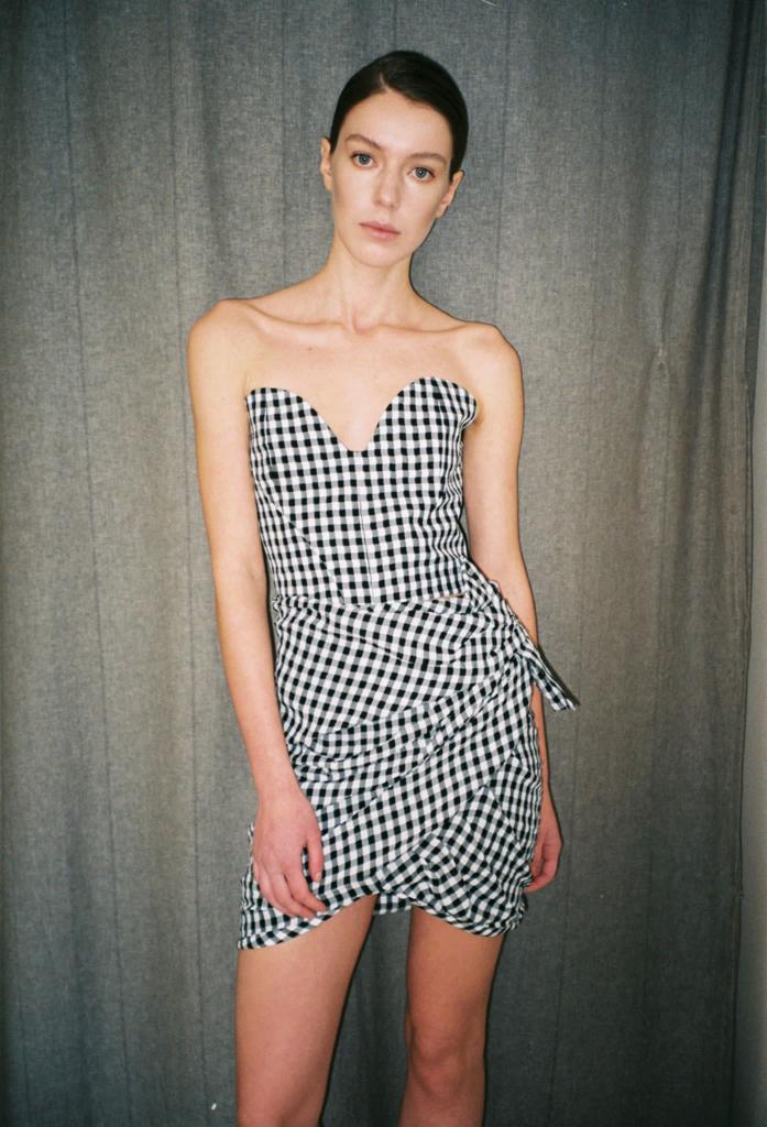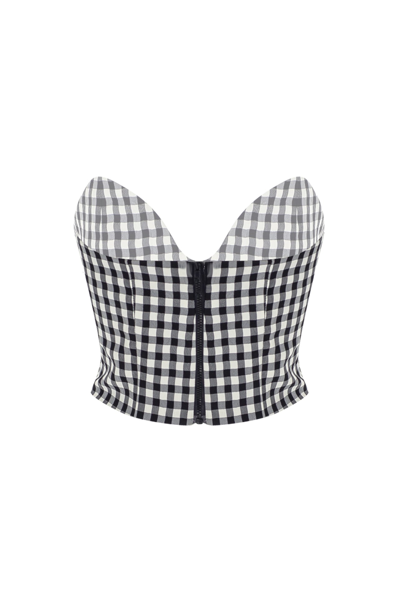 Body-hugging gingham print bustier with a zip fastening at the back. You can complete the look with the Millie Skirt.