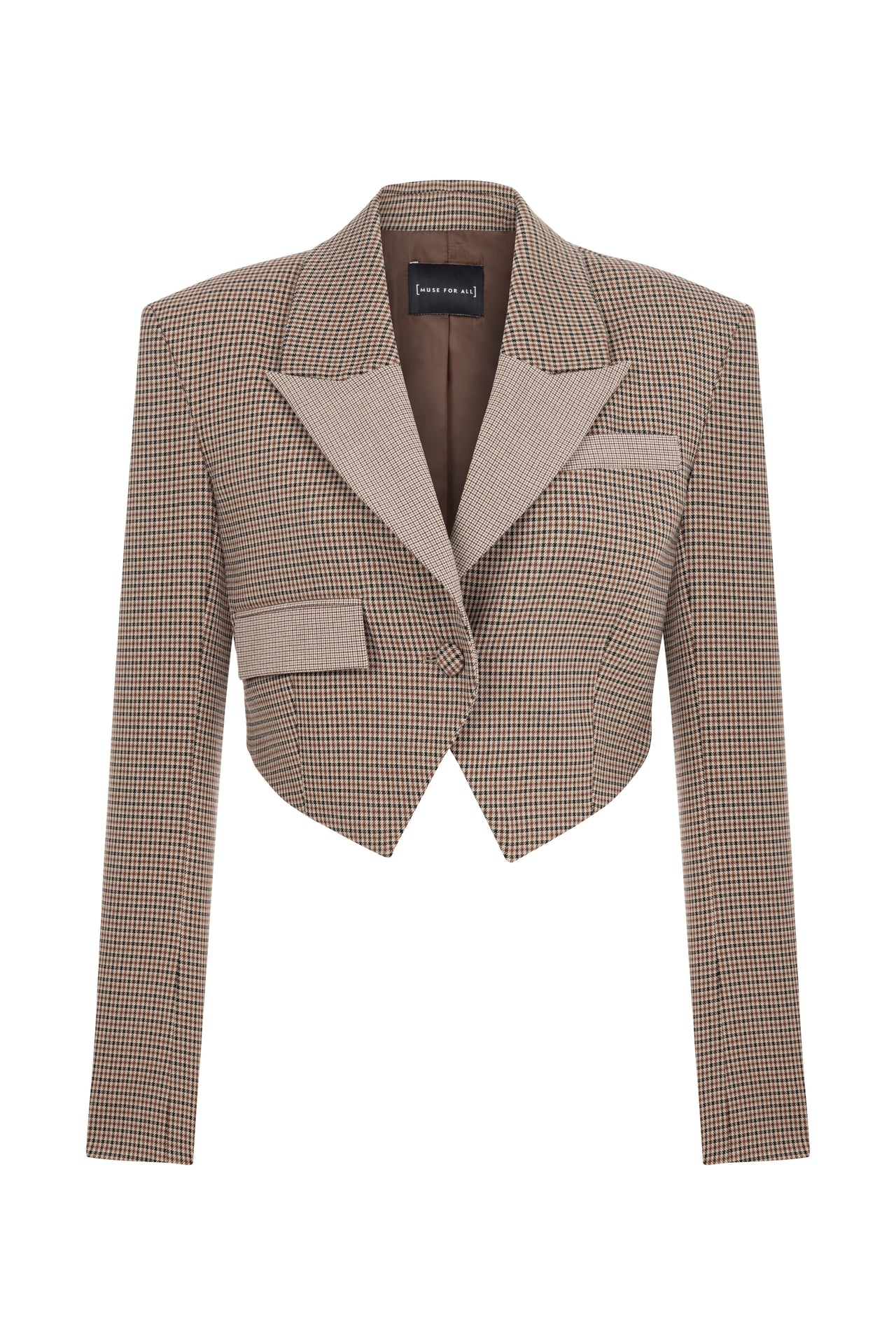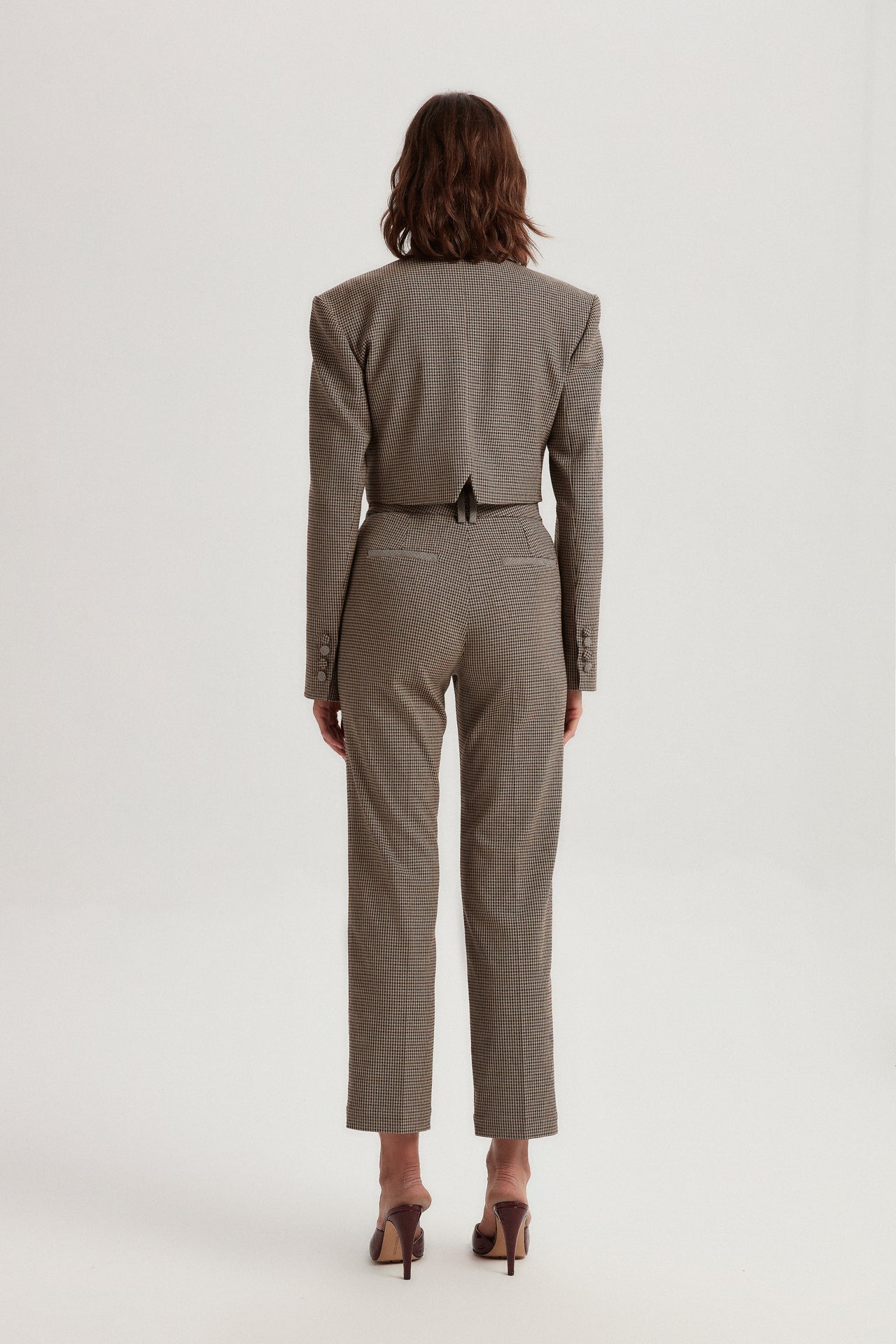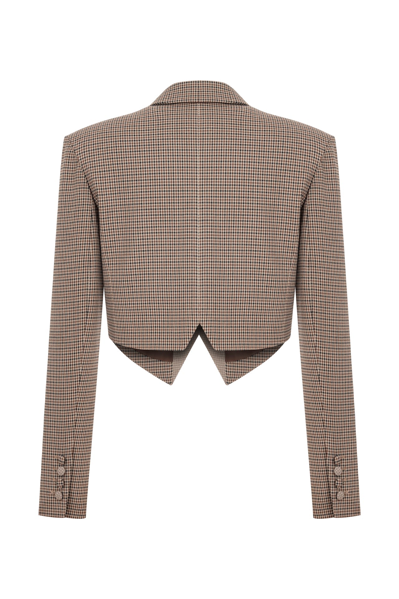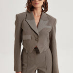 Cropped blazer with gingham pattern.