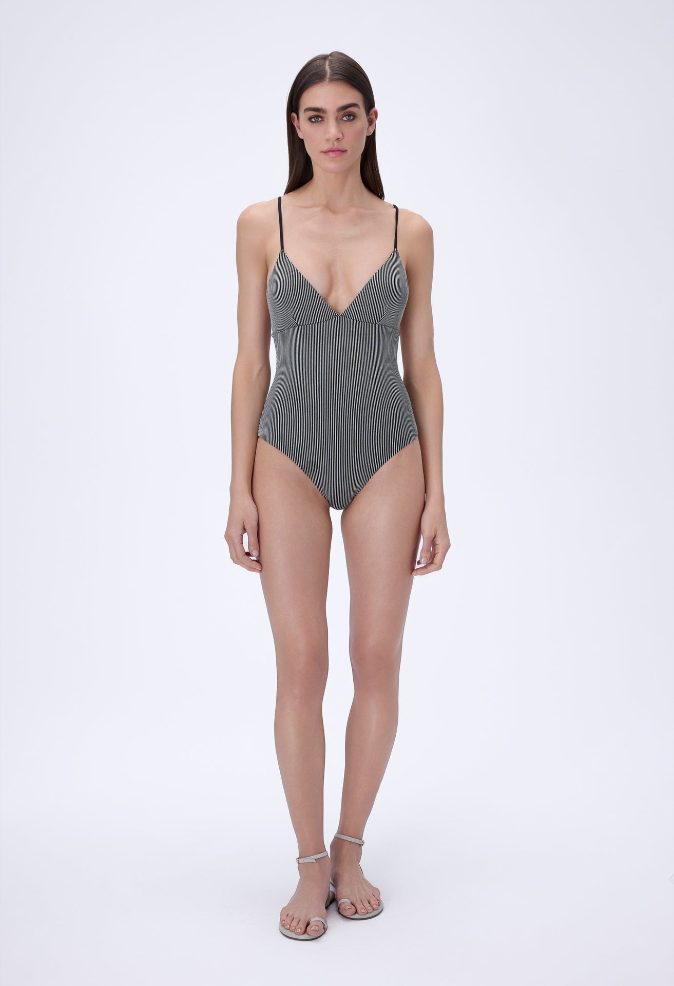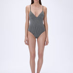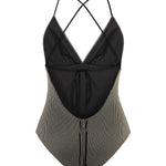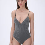 Striped V-Neck Swimsuit with Thin Straps