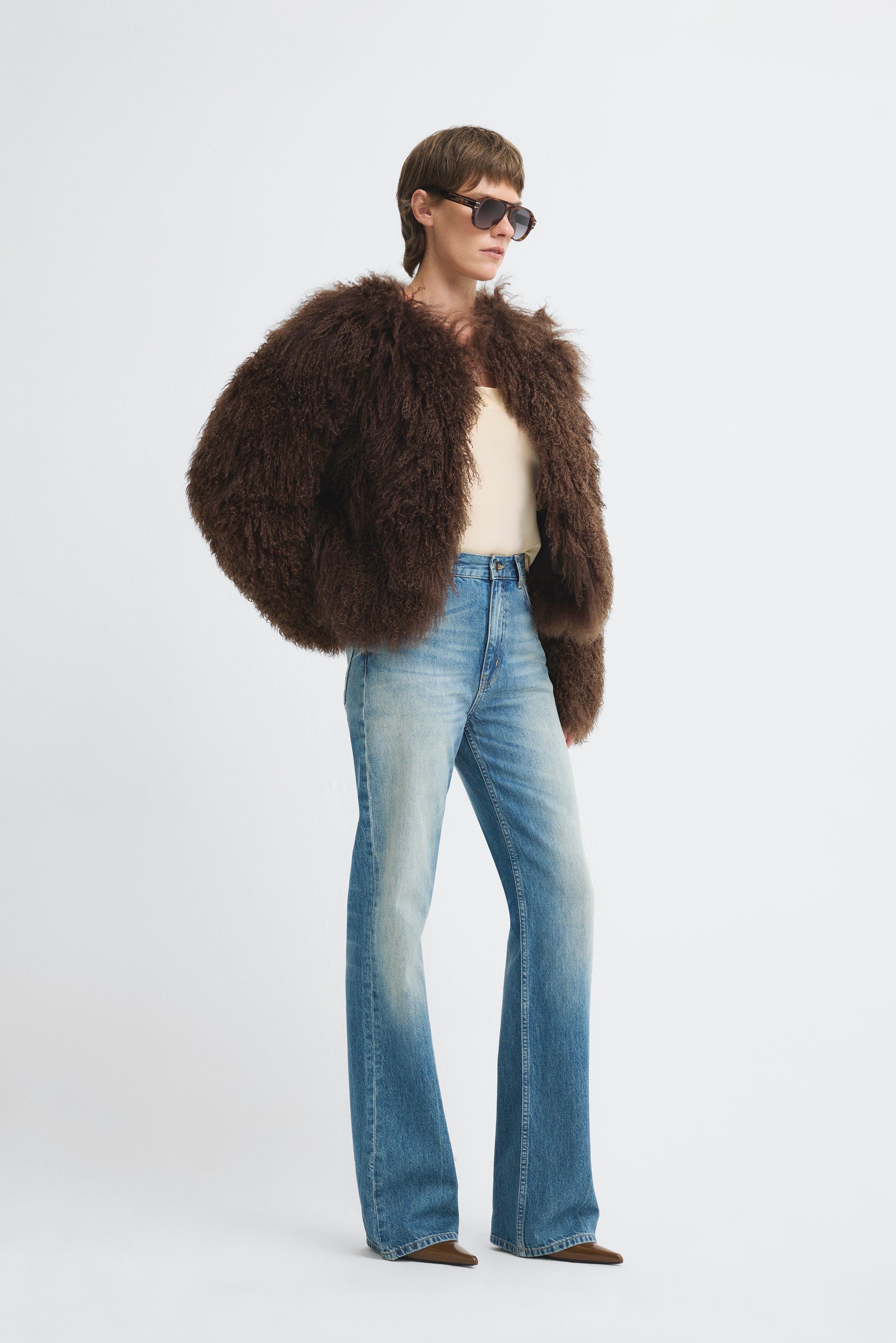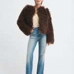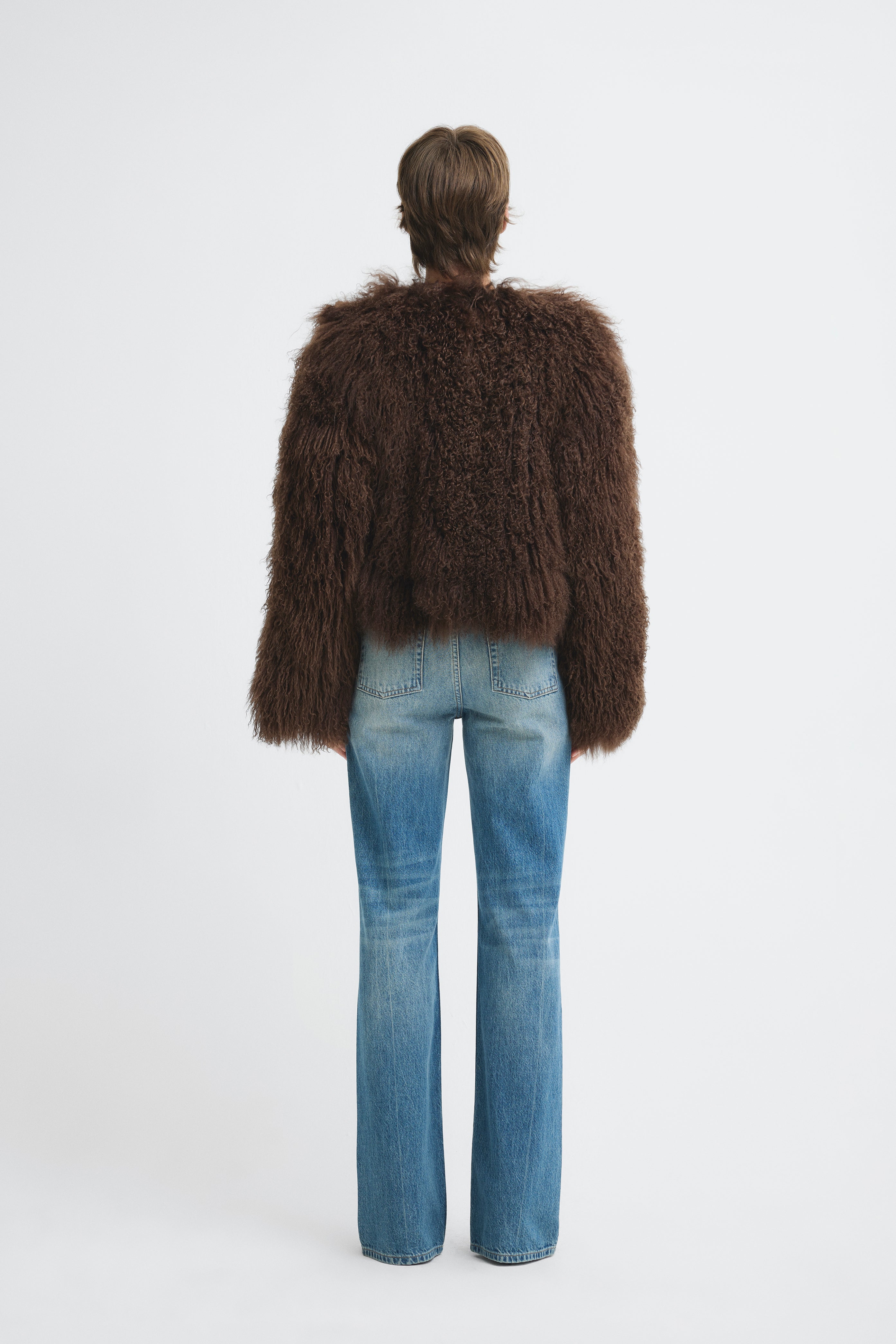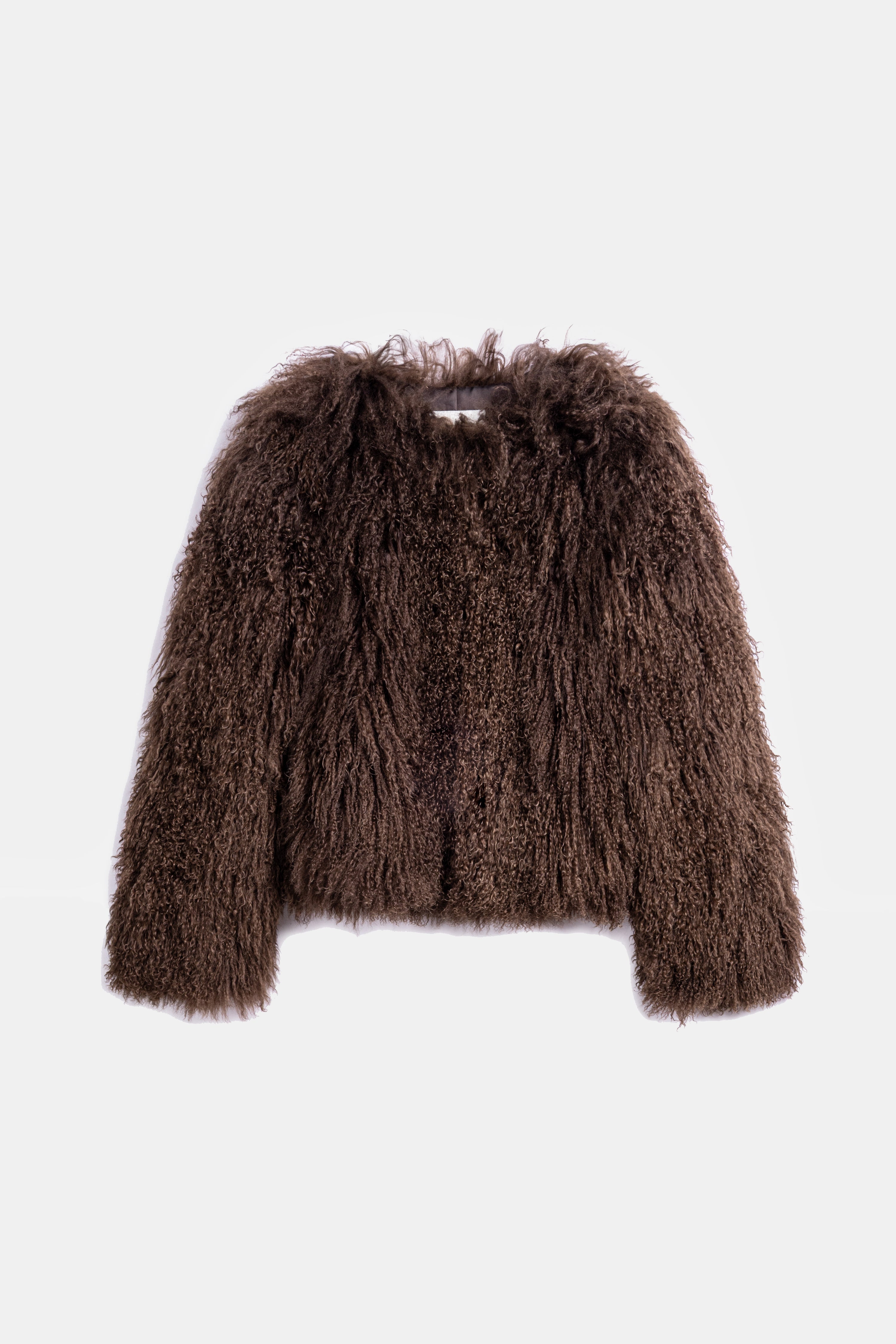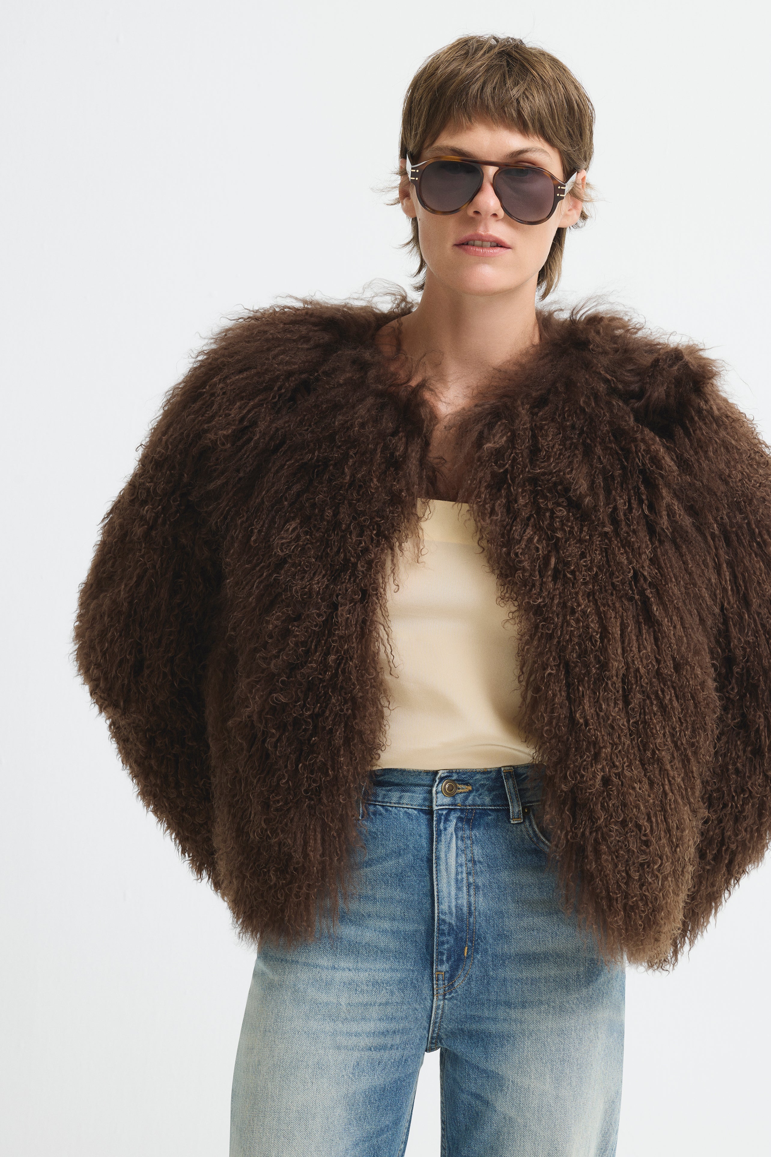 Short-cut, fluffy-textured, fur jacket.
