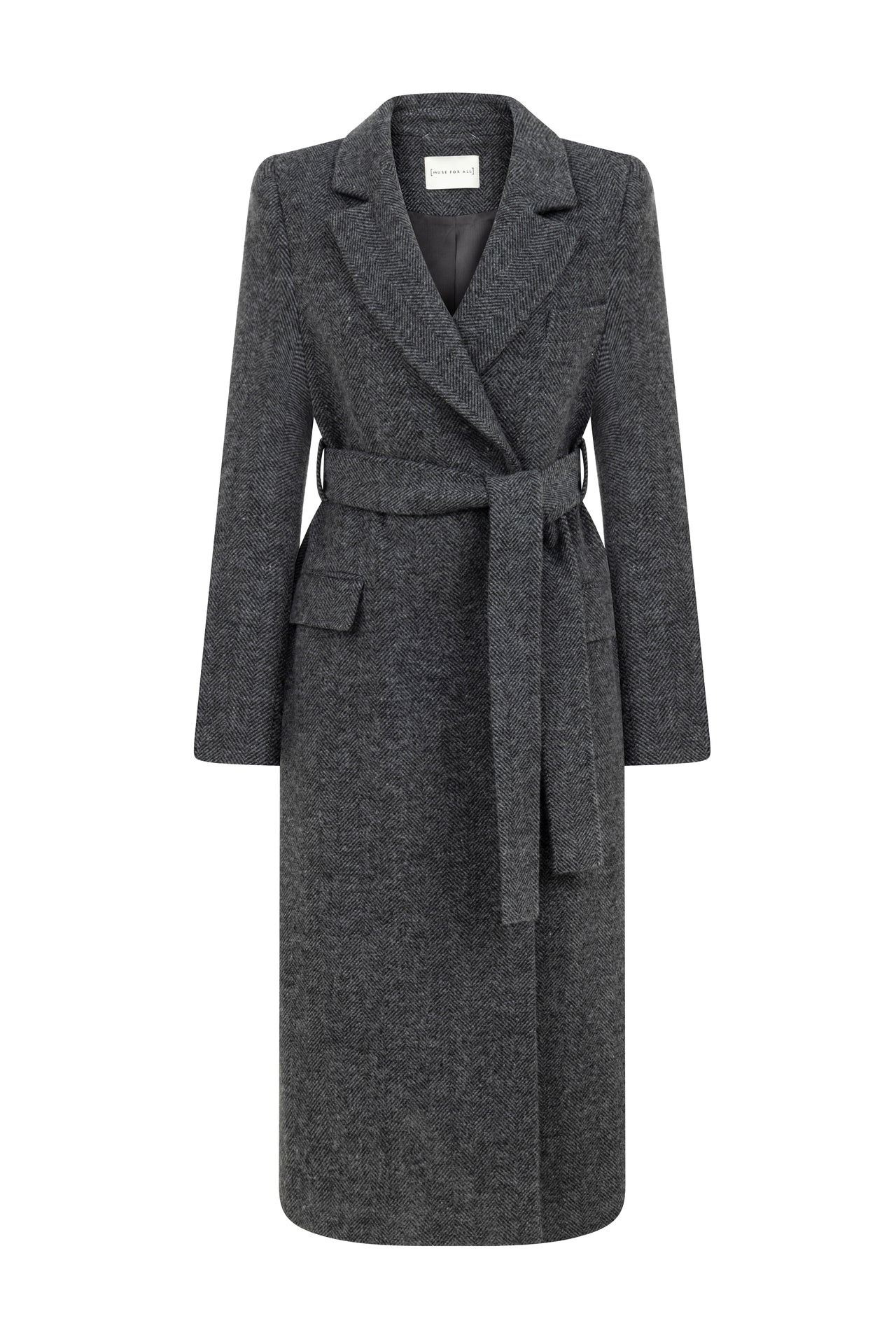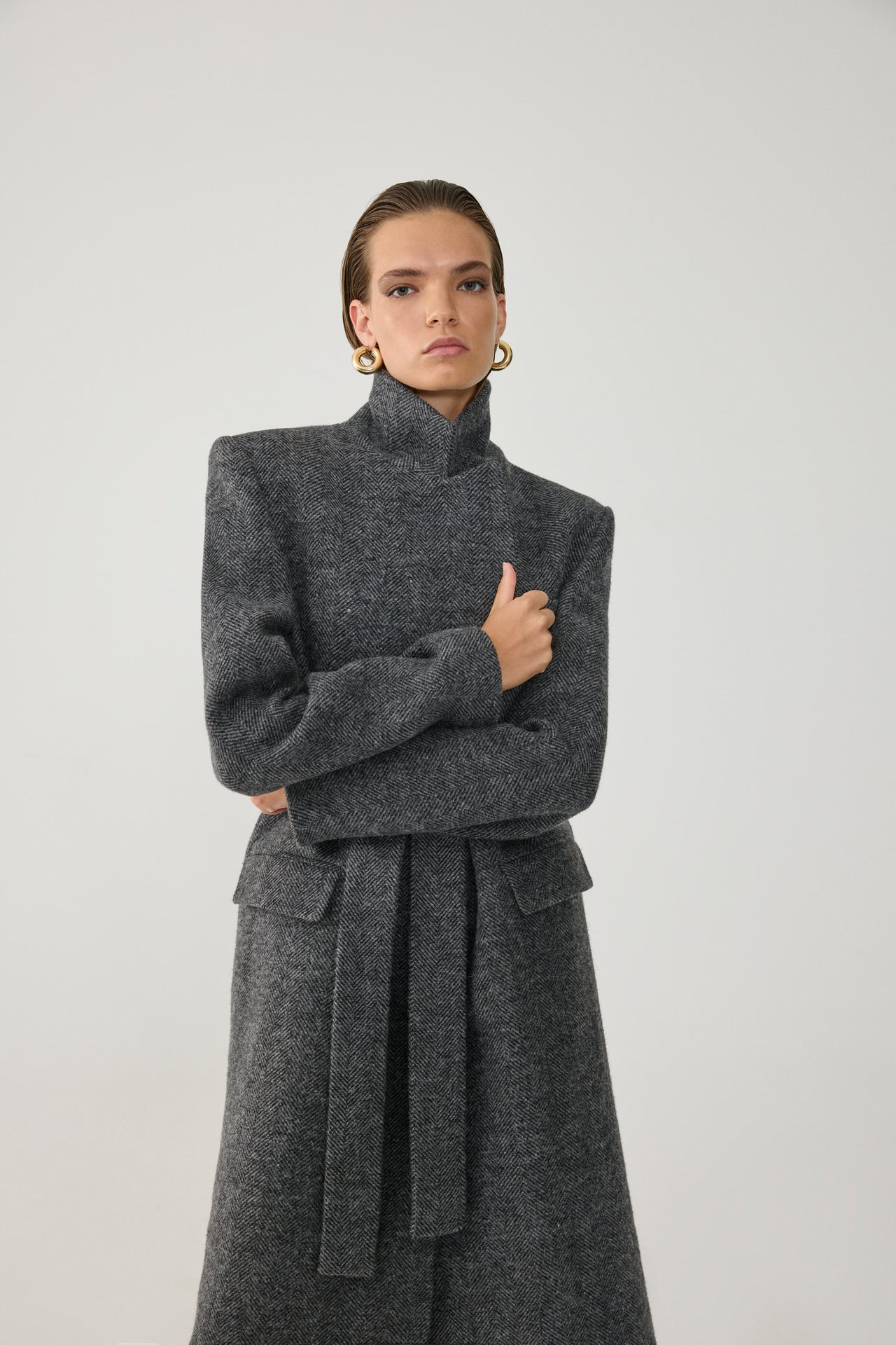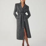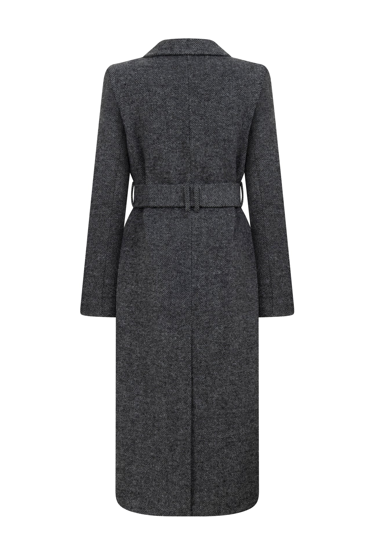 Fitted, belted long coat.