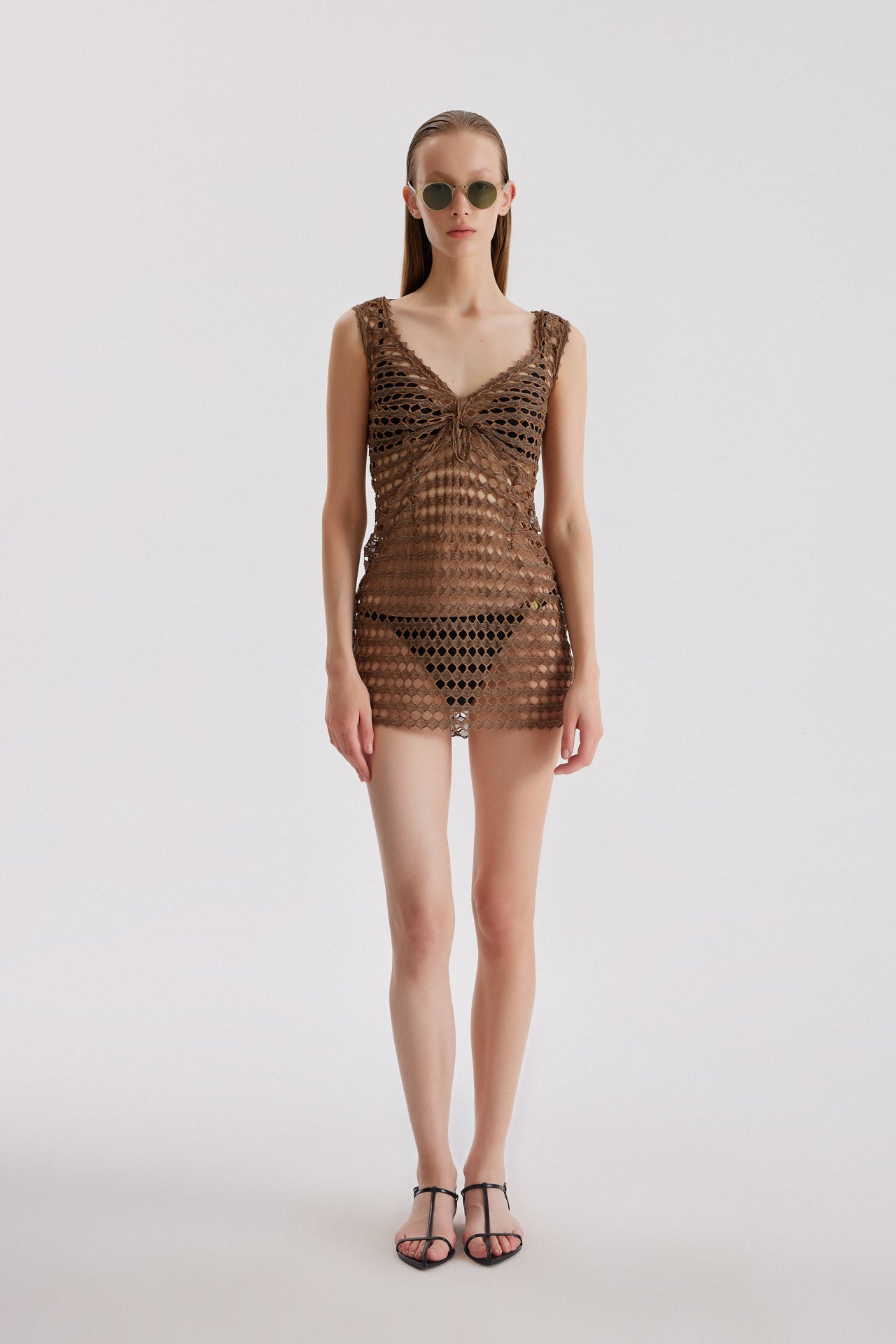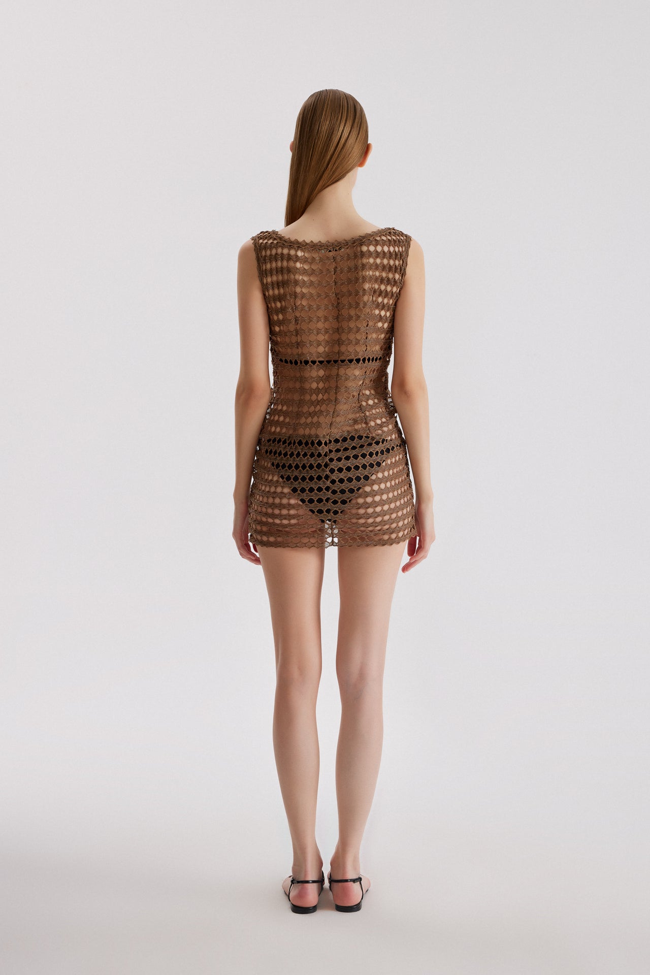 Sheer openwork mini dress.