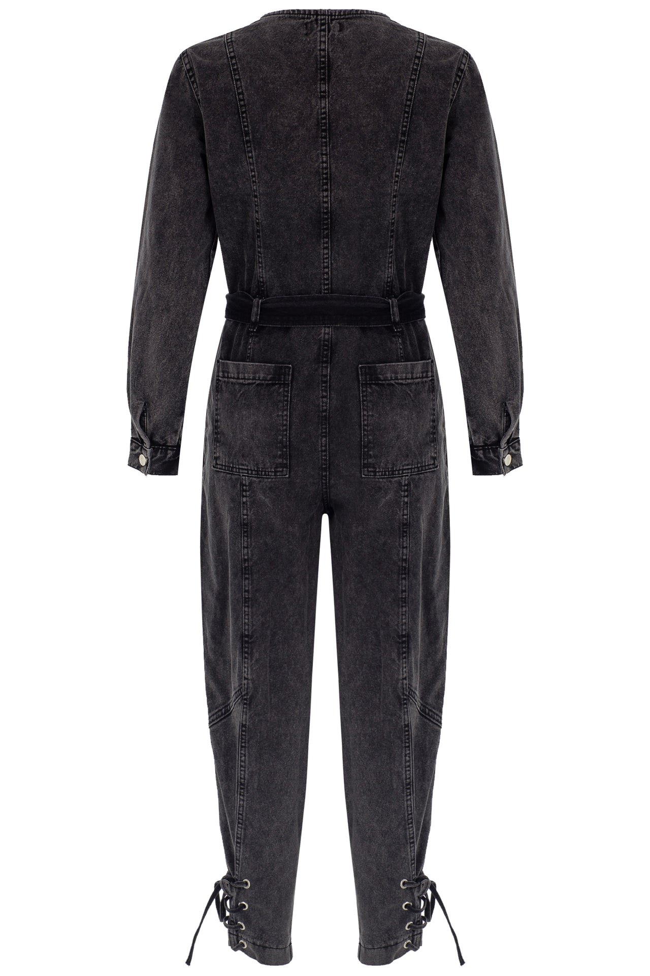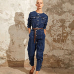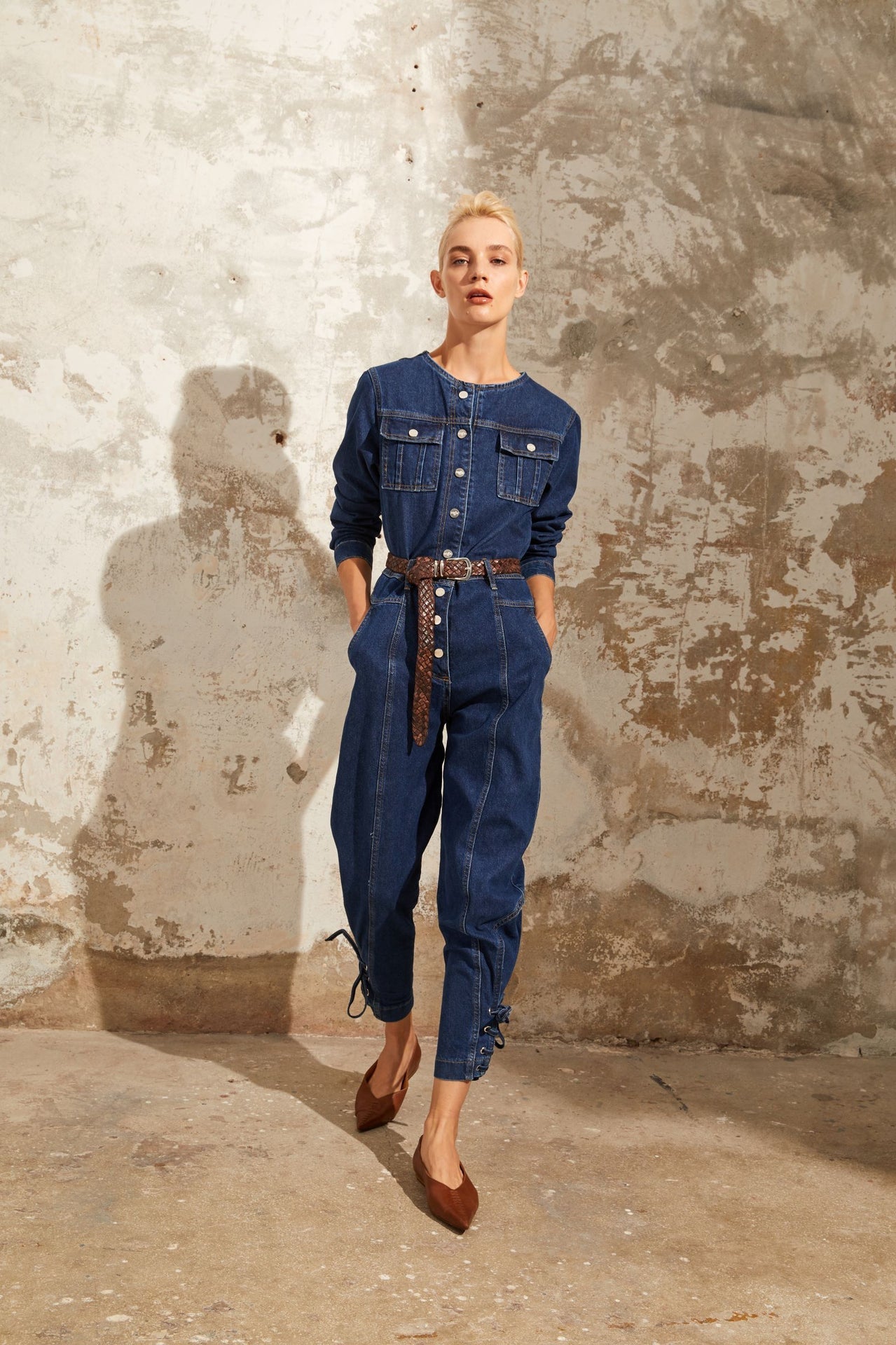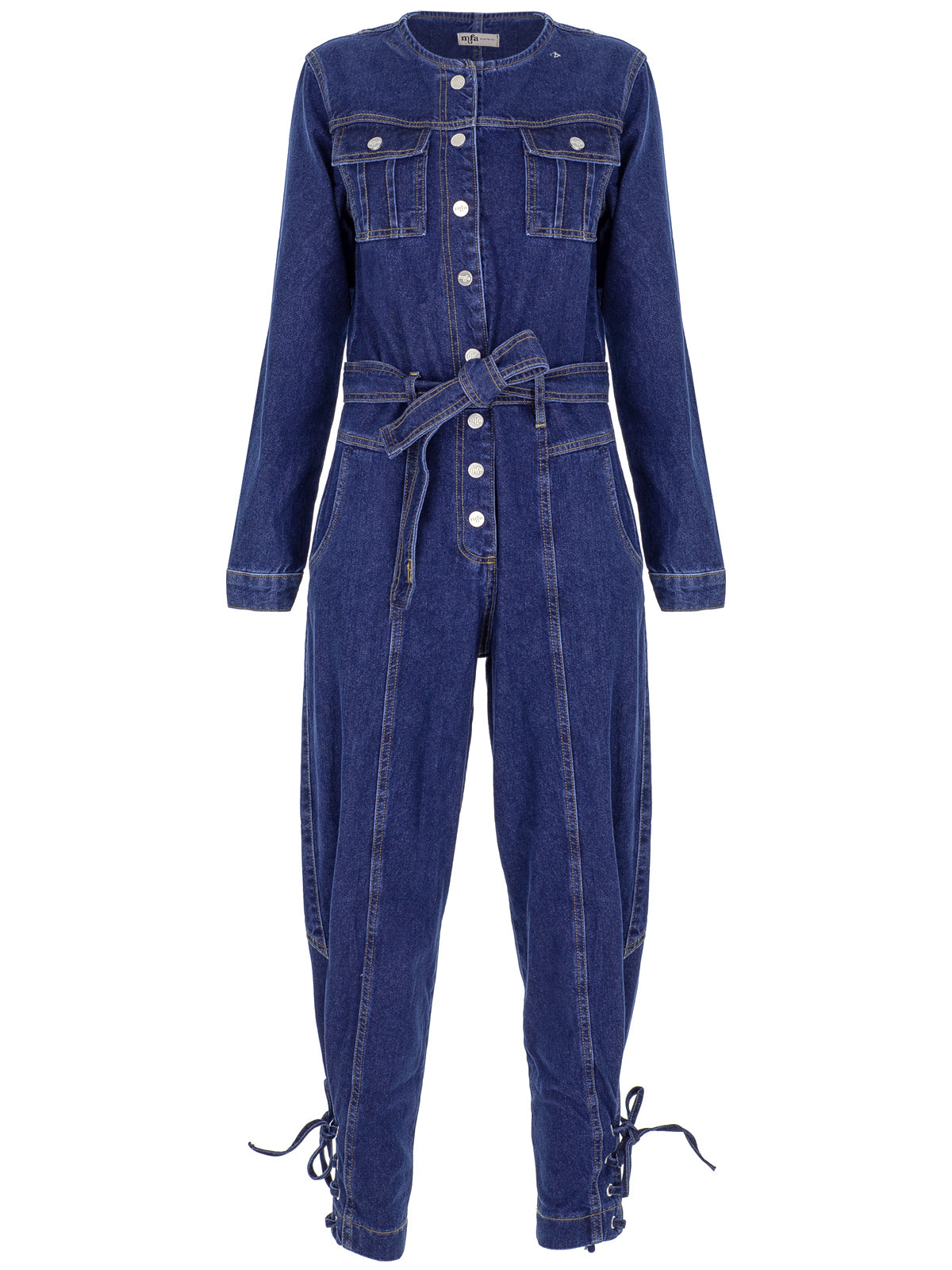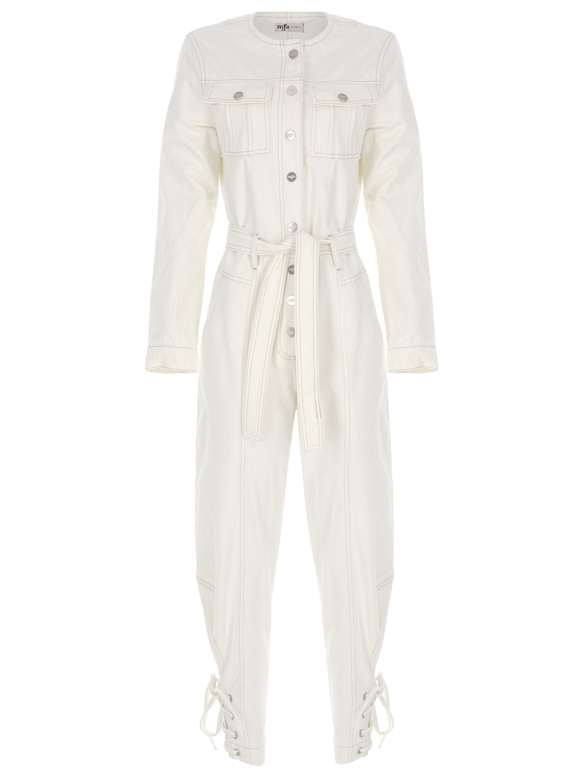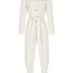 Designer jumpsuit that tapers from the hips to the hems and has a rope detail at the ankles.