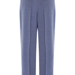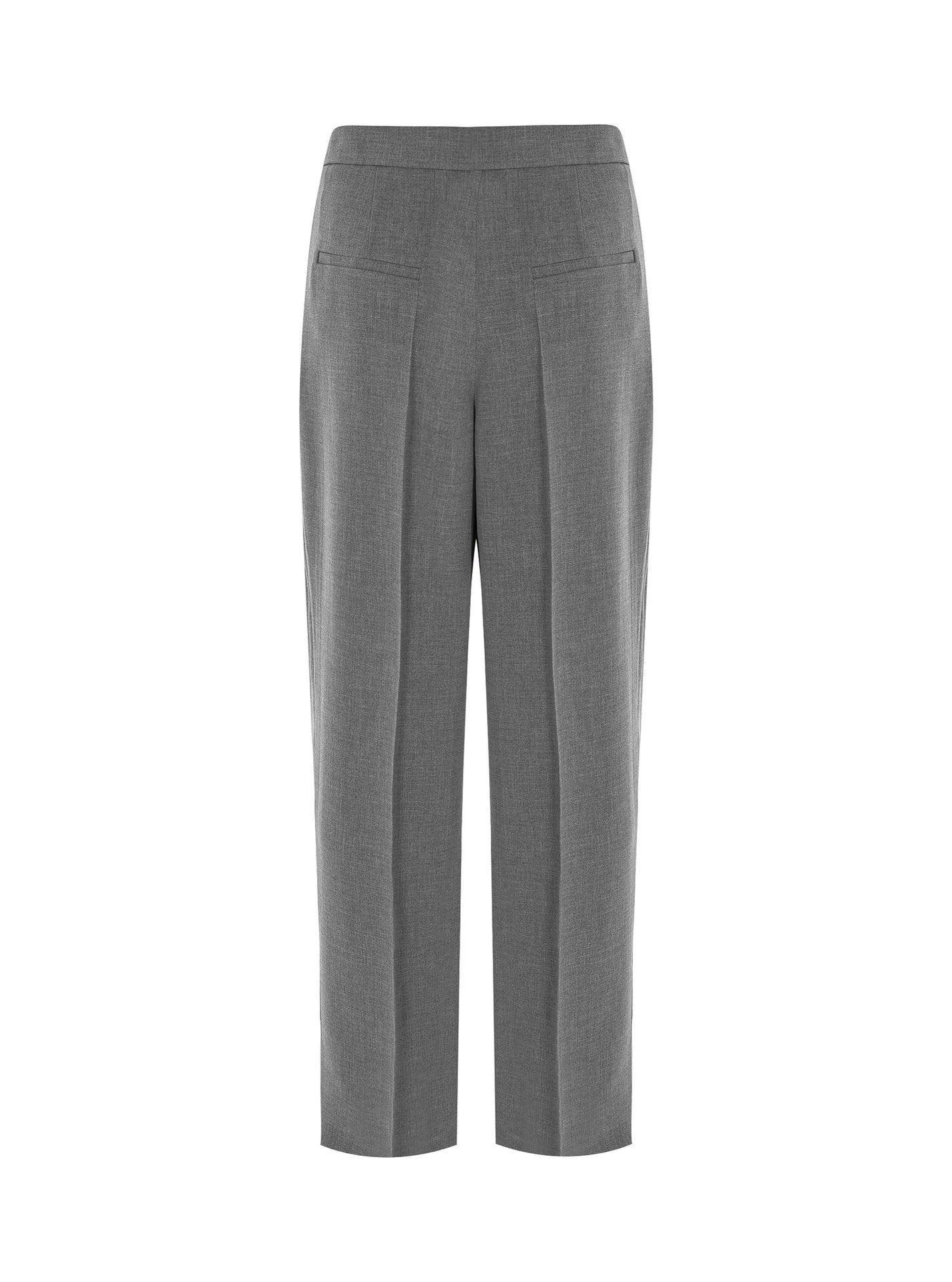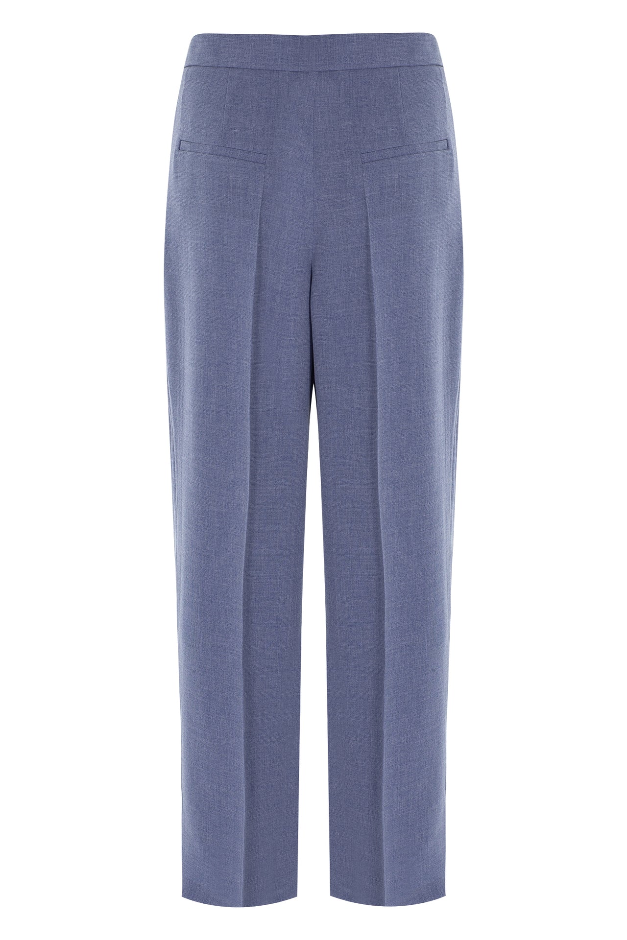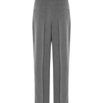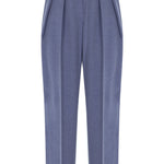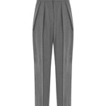 High-waisted ankle-length trousers with pleats at the front. It has a zipper in the front.